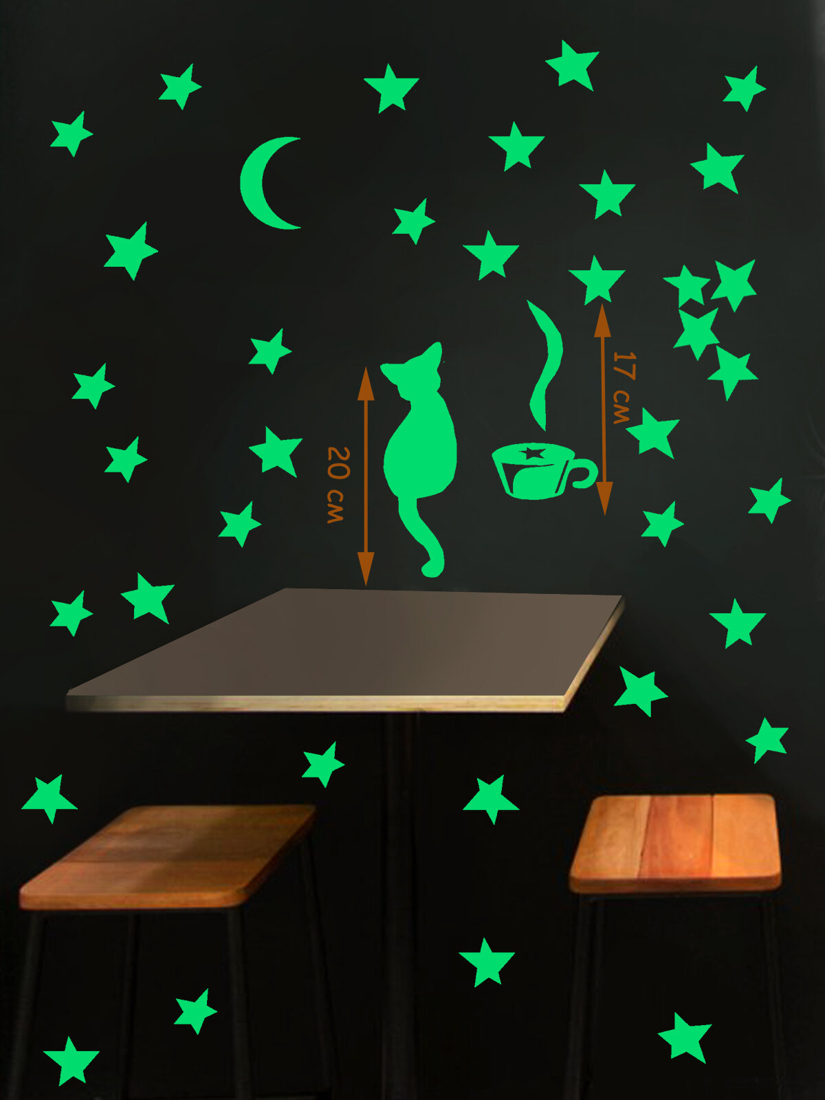 Купить Наклейка светящаяся ' Кот и звезды ', 30x35см. (месяц и кружка)