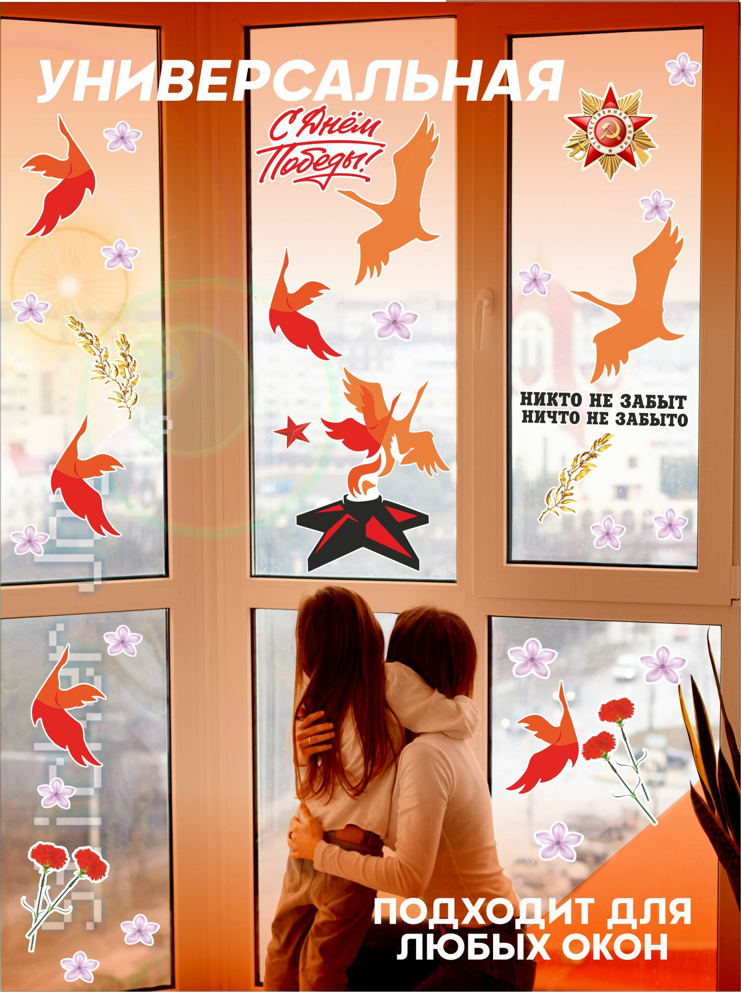 Виниловые наклейки на окна на стену 9 мая родина мать