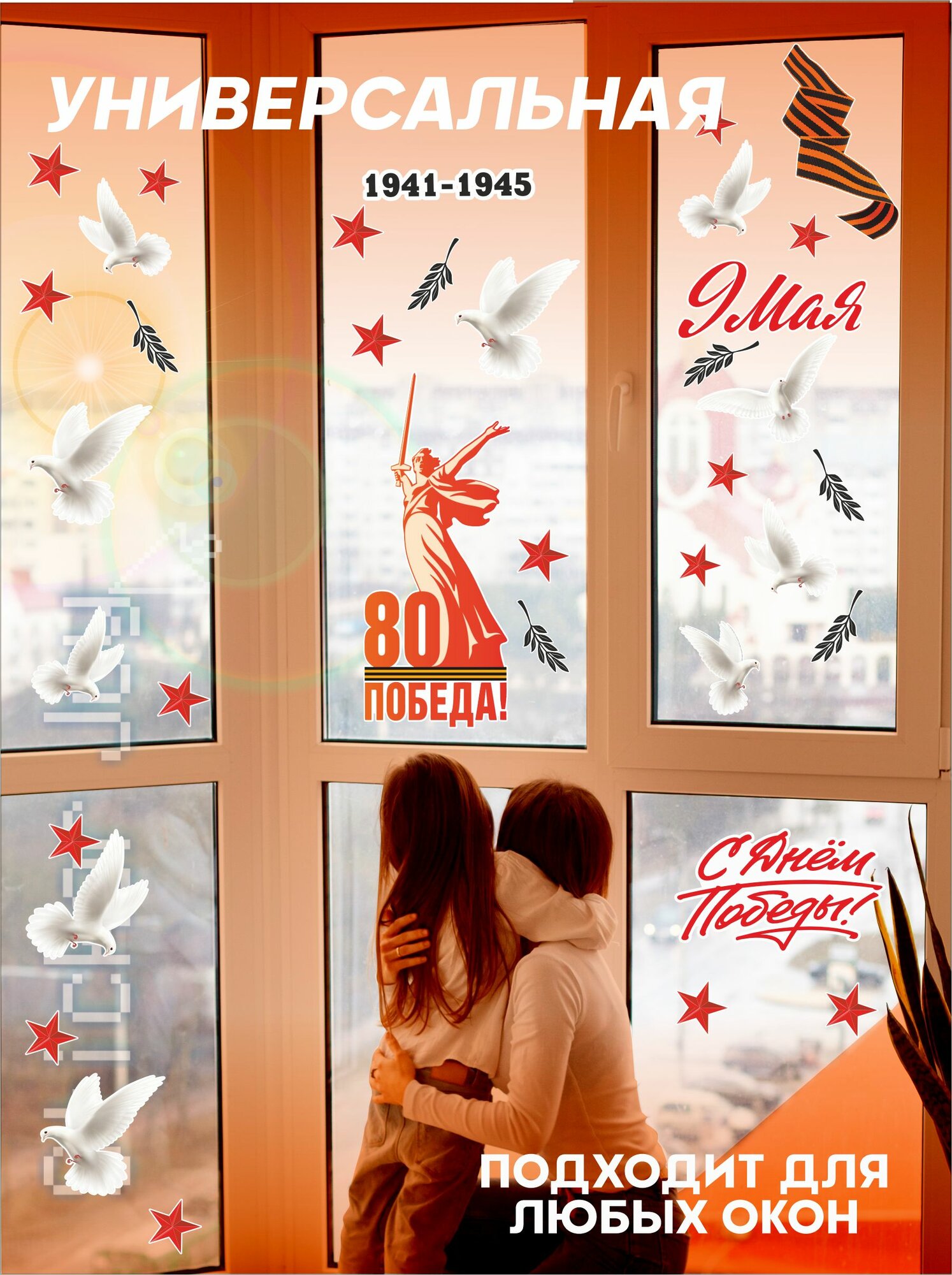 Виниловые наклейки на окна на стену 9 мая 80 лет победы