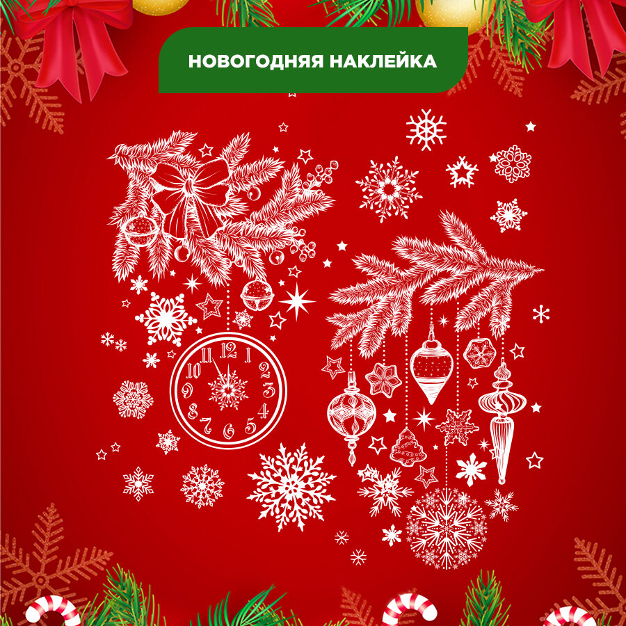 Купить Новогодние наклейки на стену и окна для декора и украшения / Игрушки, снежинки / 50х35 см