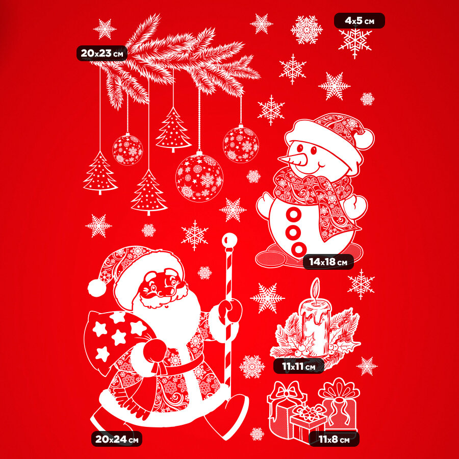 Новогодние наклейки на стену и окна для декора и украшения / Дед мороз, елка, снежинки / 50х35 см