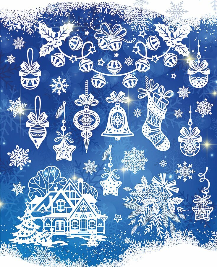 Новогодние наклейки на стену и окна для декора и украшения / Игрушки, снежинки / 50х35 см
