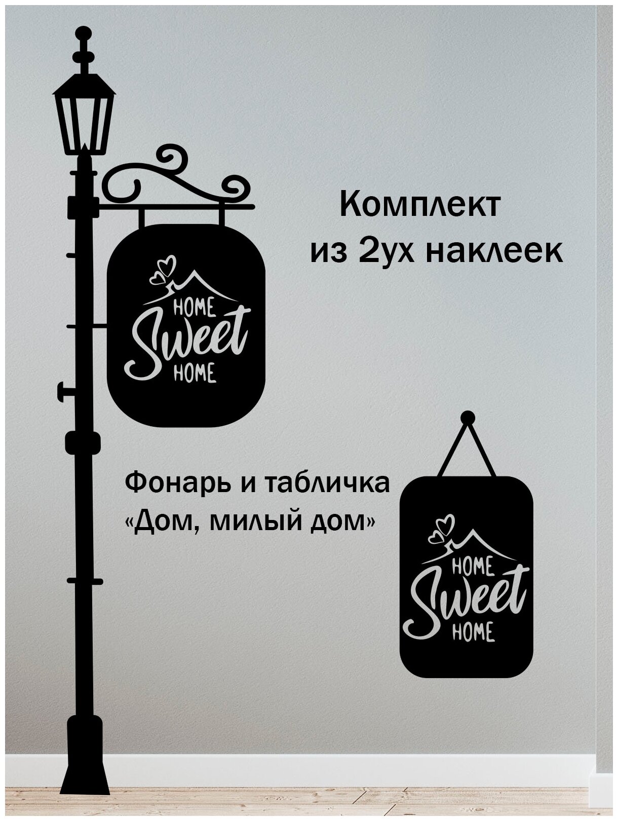 Купить Наклейка на стену ' Дом милый дом ', 115x40см. (Фонарь Табличка Надпись Home sweet home)