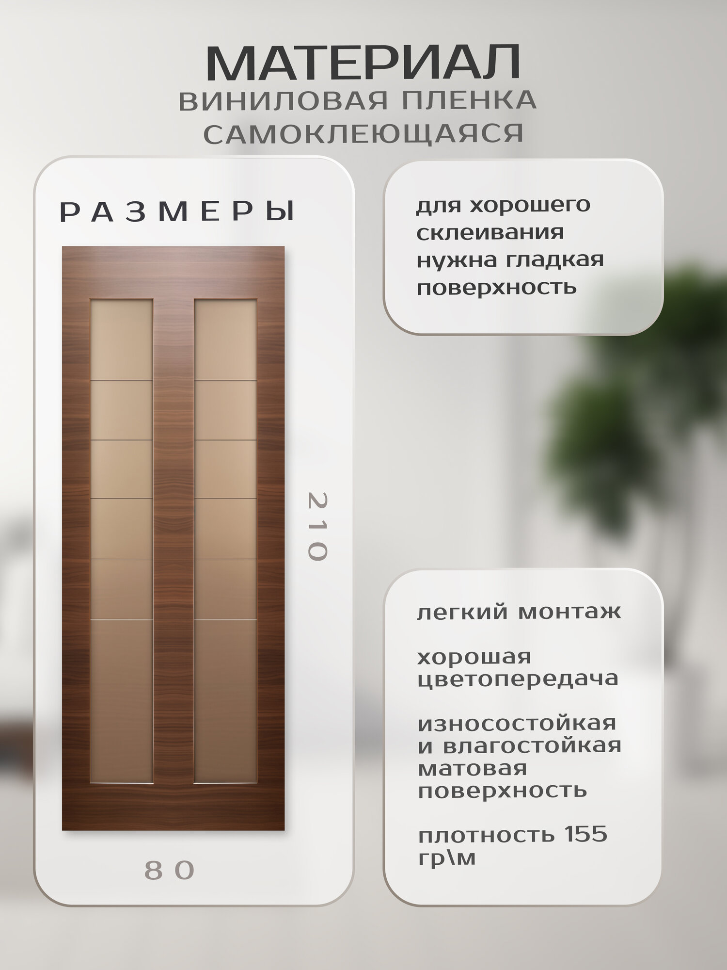 Плотная виниловая самоклеящаяся интерьерная наклейка на дверь "Коричневая" 80х210 см, самоклейка на шкаф, мебель интересное: