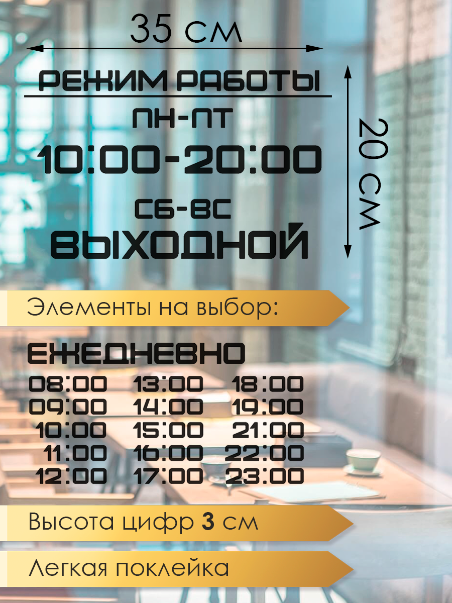 Наклейка 'Режим Работы 5' (часы работы магазина с выходными, выбери свое время)