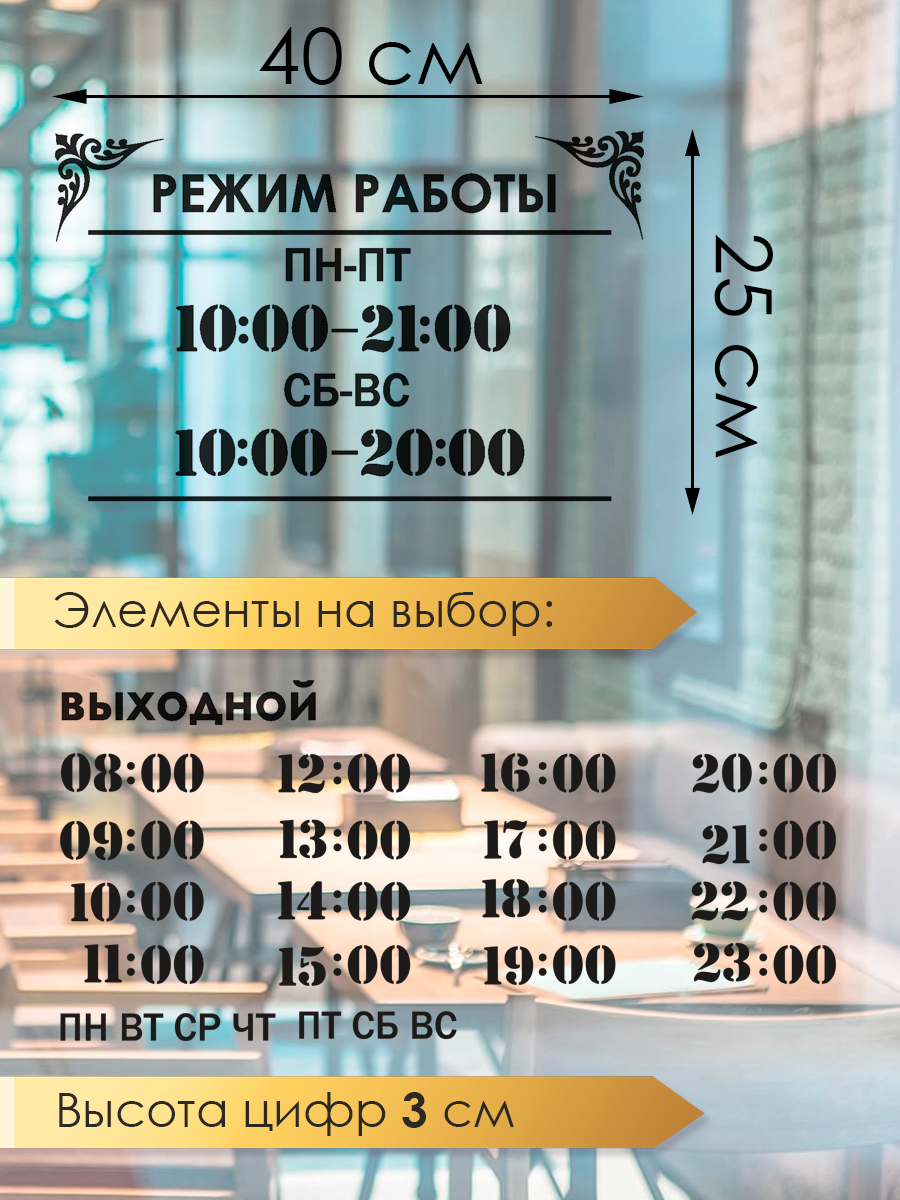 Наклейка 'Режим Работы 6' (часы работы магазина с выходными, выбери свое время)