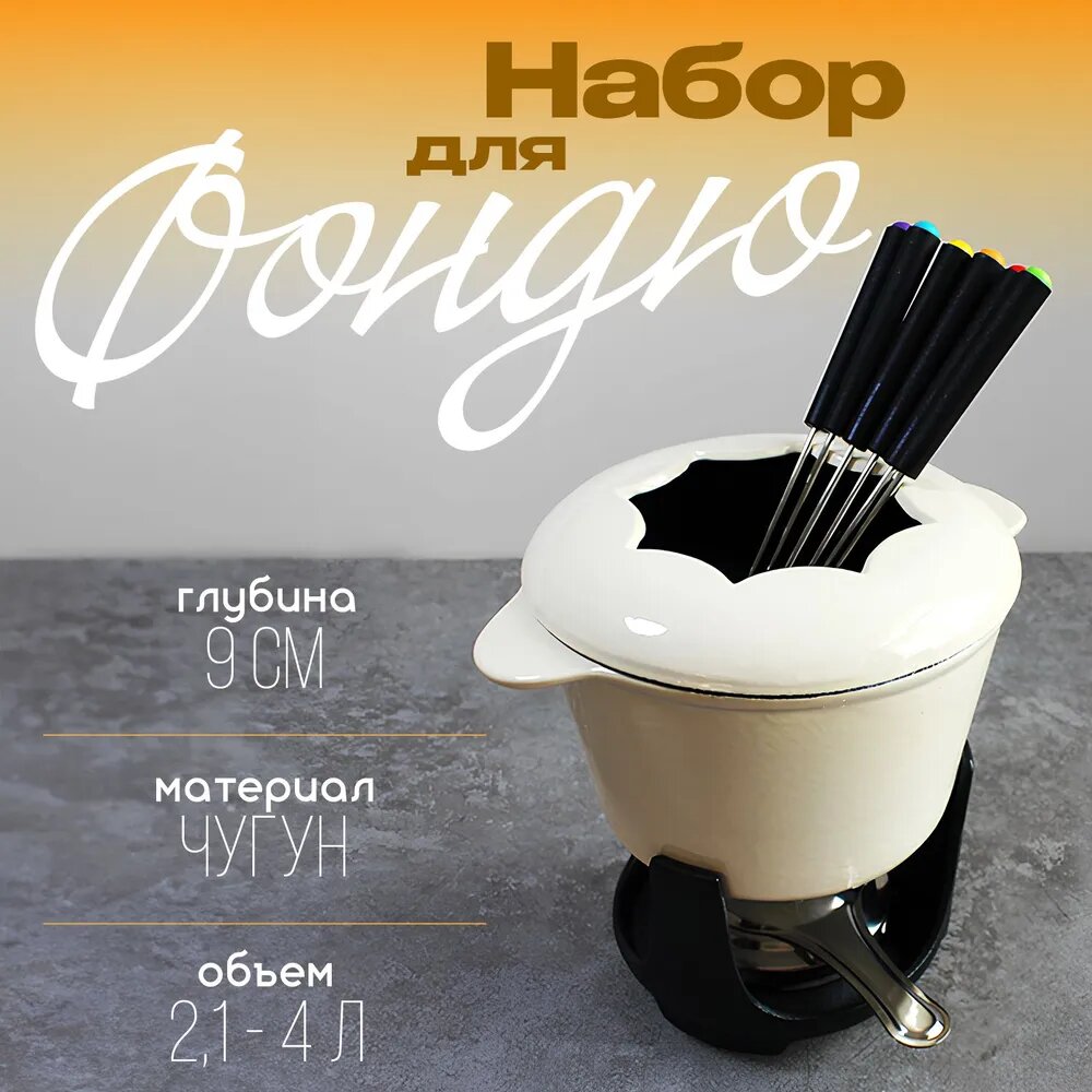 Набор для фондю "Глянец", 6 предметов: чаша 400 мл, подставка, 4 шпажки, керамика, белый