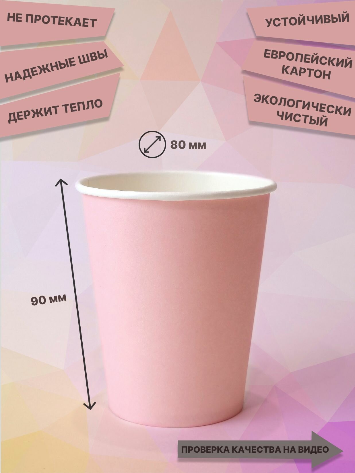 Стаканчики ViRiDo, бумажные, одноразовые, светло-розовые, 250 мл, 100 штук