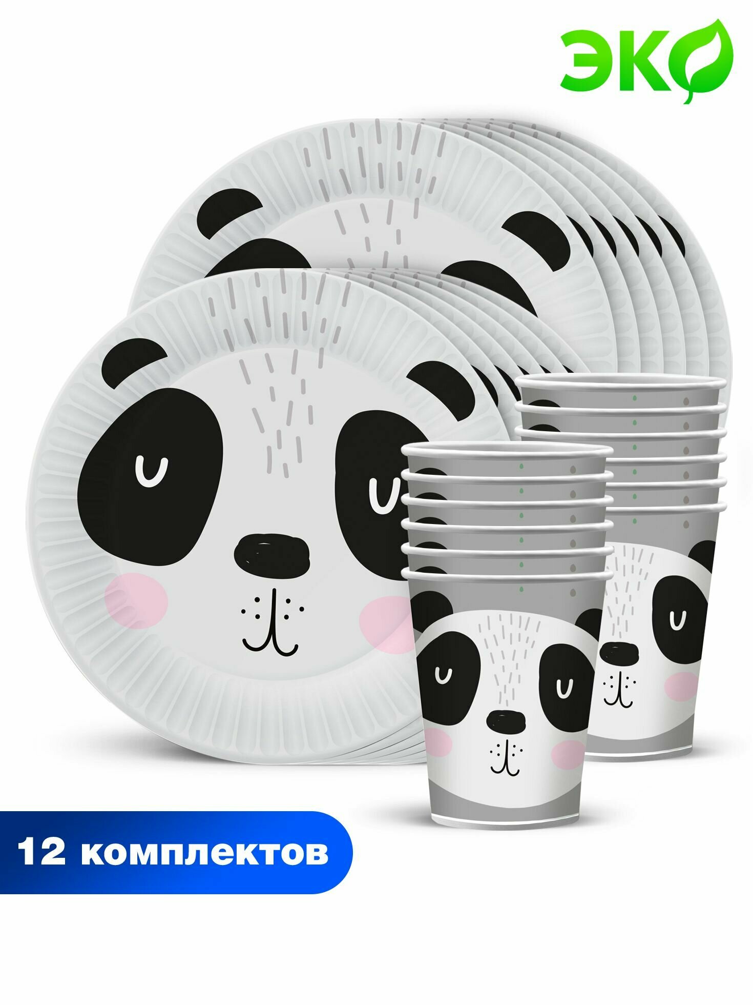 Купить Набор одноразовой бумажной посуды для праздника ND Play / Хэппи Зоо / Животные. Панда (тарелка 18 см, стакан, по 12 шт.)