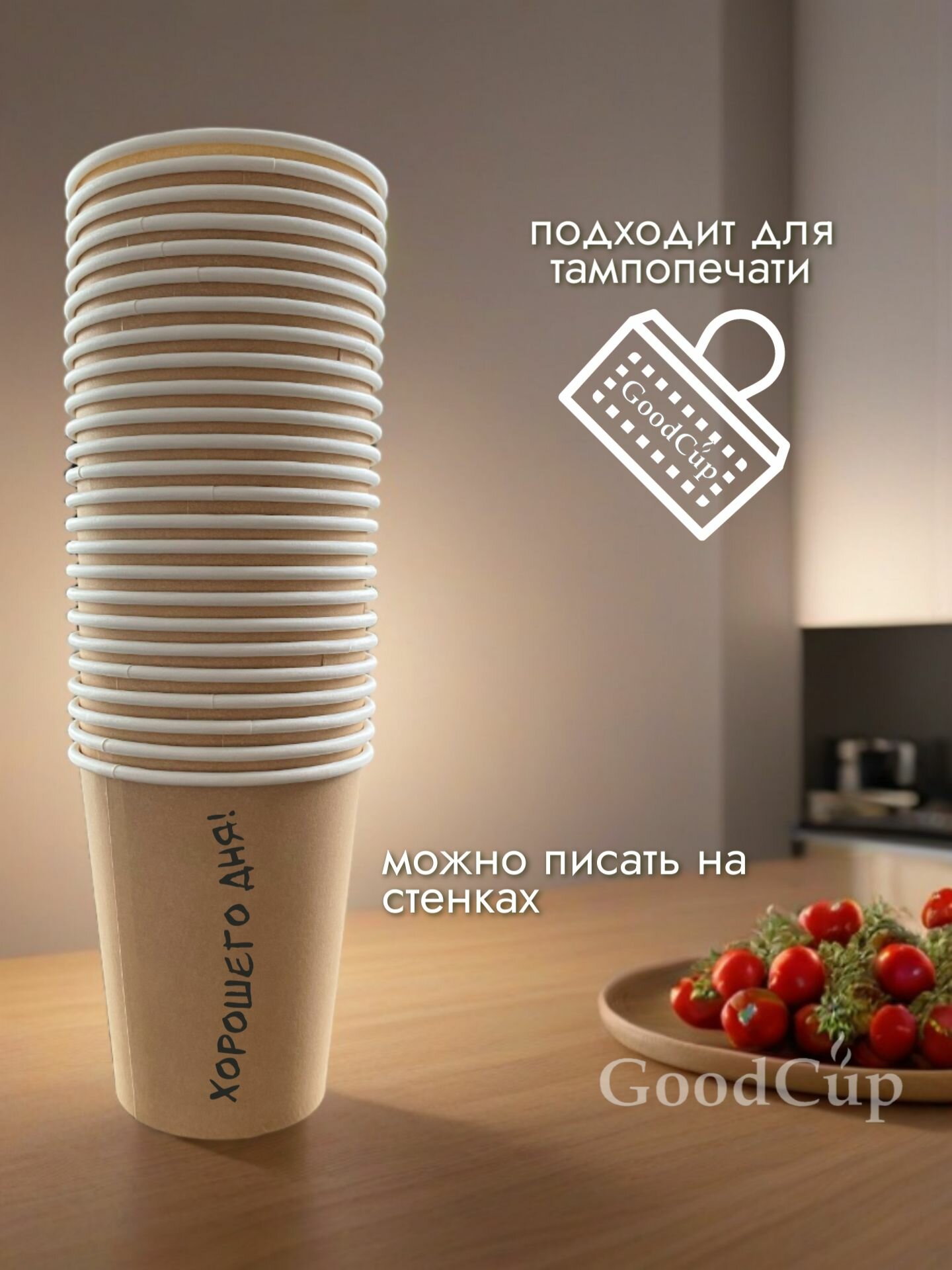 СохранитьОдноразовые стаканы GoodCup бумажные для кофе и чая, холодных и горячих напитков 250 мл, 100 штук интересное: