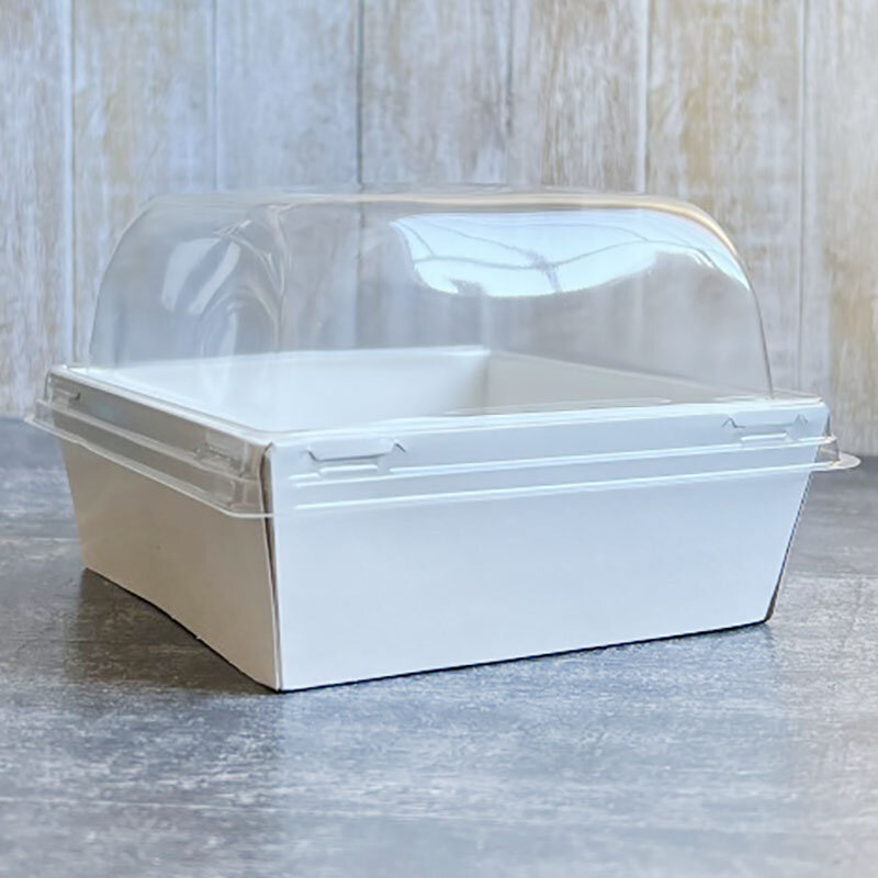 Купить Контейнер картонный для салата 800мл 130x130x85мм белый с купольной крышкой уп/10шт