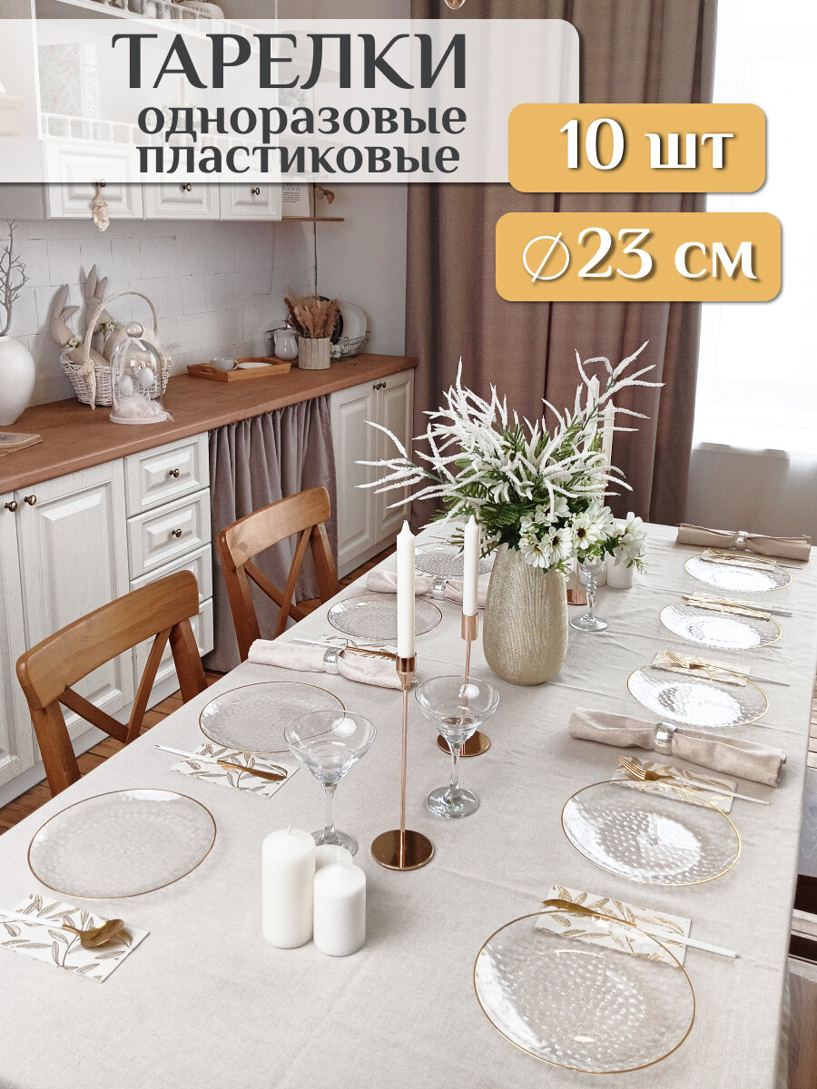 Купить Тарелки одноразовые пластиковые прозрачные 23 см 10 шт для праздника посуда