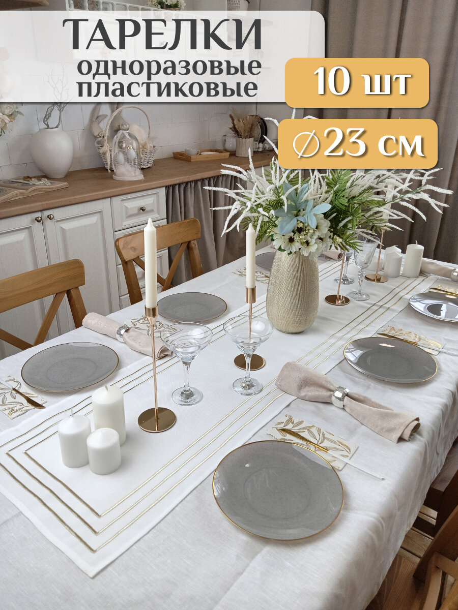 Купить Тарелки одноразовые пластиковые серые 23 см 10 шт для праздника посуда
