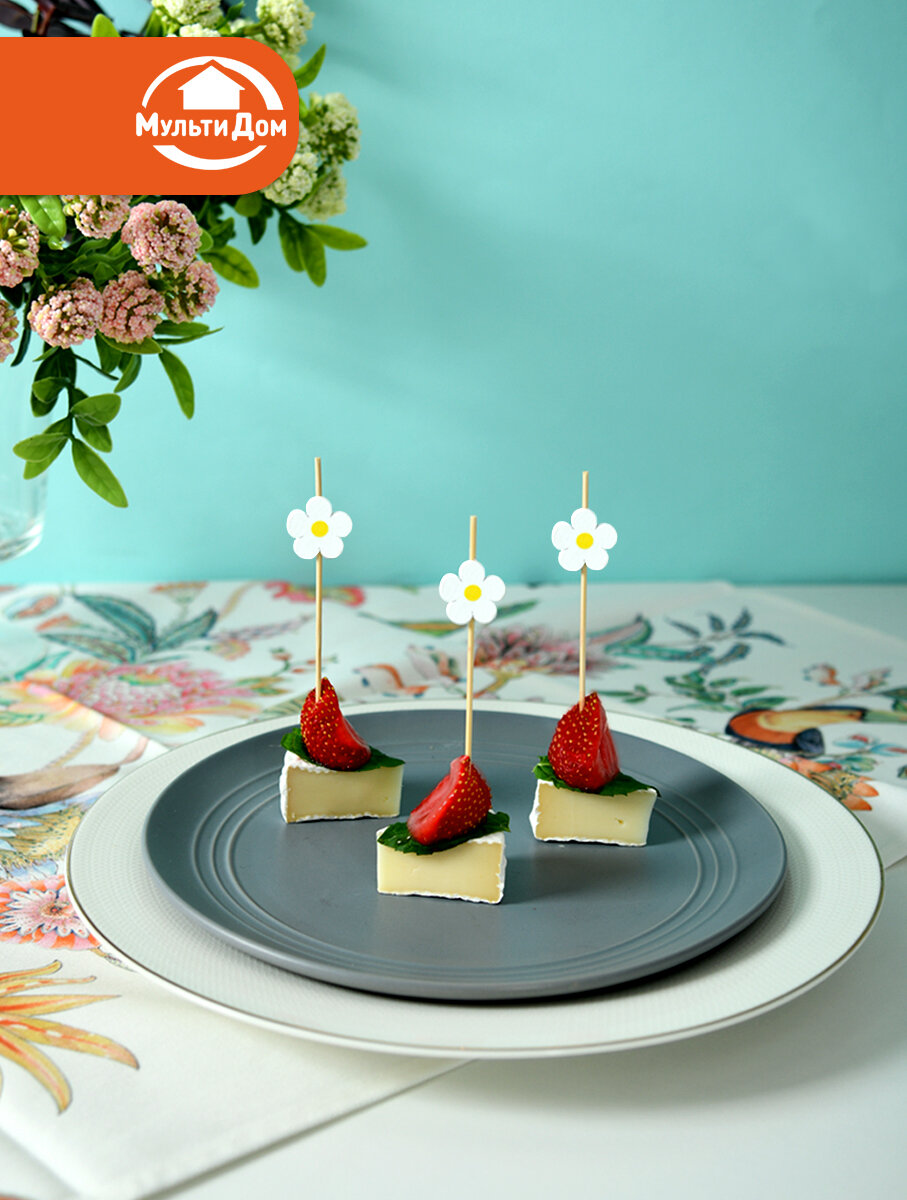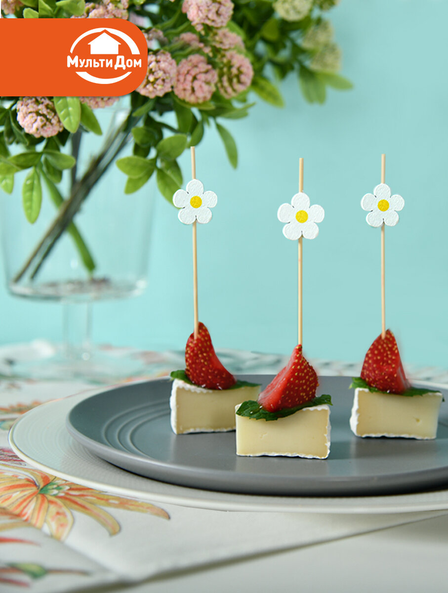Шпажки для канапе Ромашки 24 шт. изготовлены из дерева, общая длина шпажки 12 см. интересное: