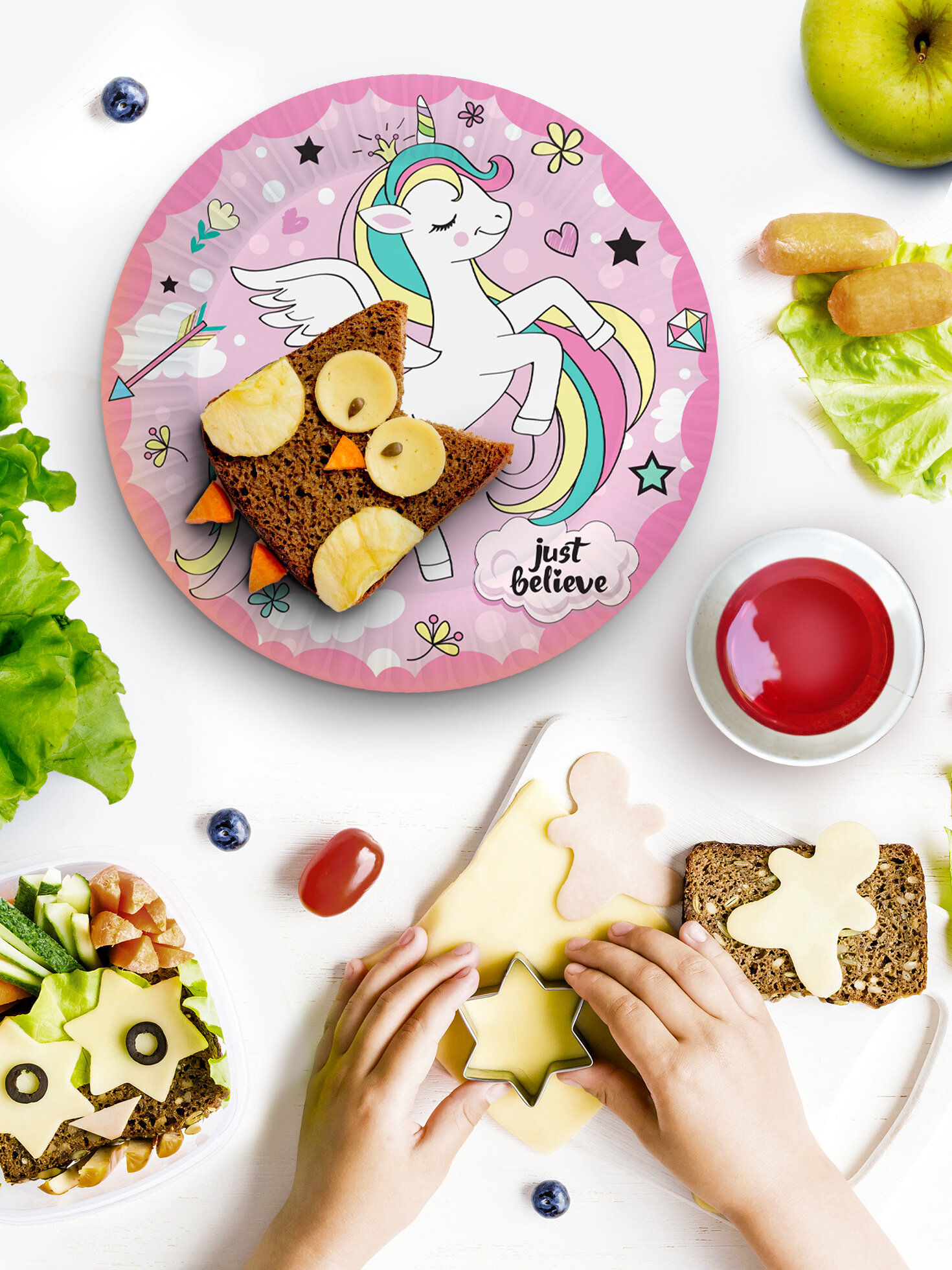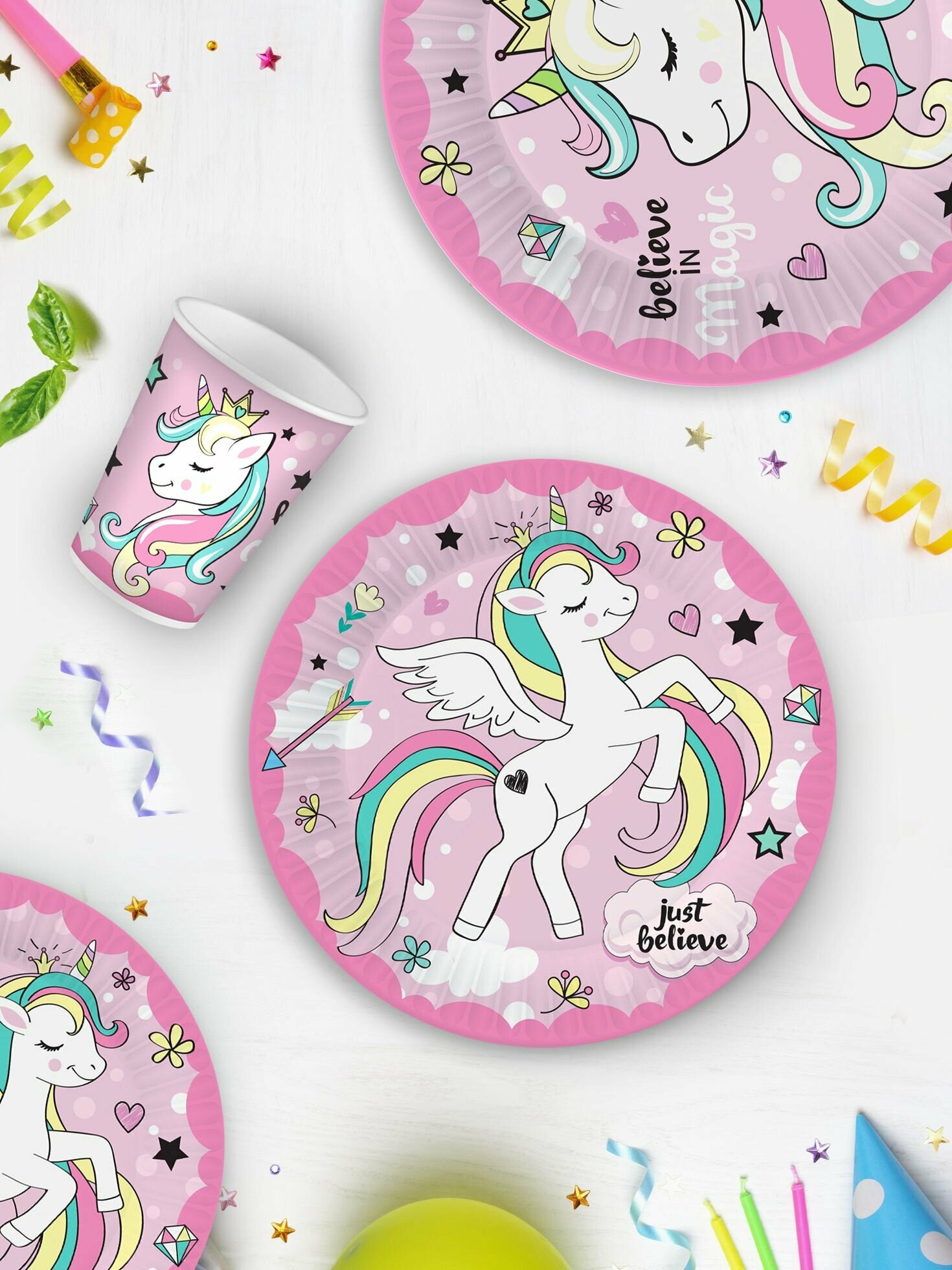 Набор одноразовой бумажной посуды для праздника ND Play / Единорог (тарелка 18 см, тарелка 23 см, стакан 250 мл, по 6 шт.), 298786 интересное: