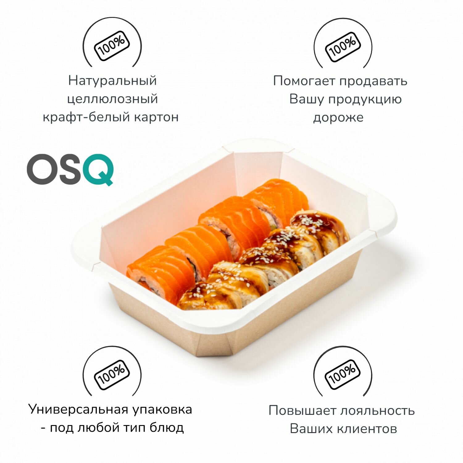 Купить Контейнер одноразовый для еды с пластиковой крышкой плоской крафтовый OSQ OCTOBOX 800 мл объем, 10 шт.
