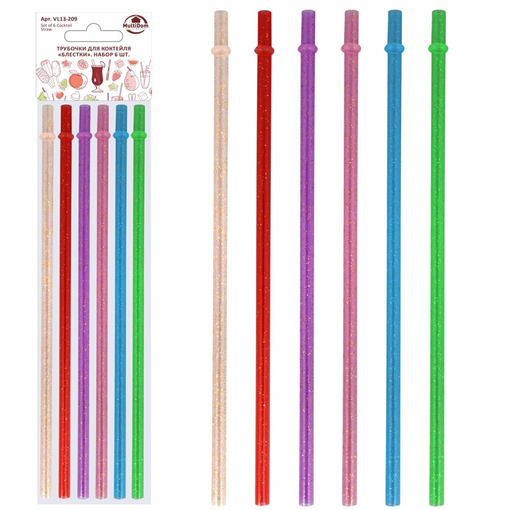 СохранитьТрубочки для коктейля 6 штук "Блестки" , пластик, длина 25.5 см, диаметр 0,7 см интересное: