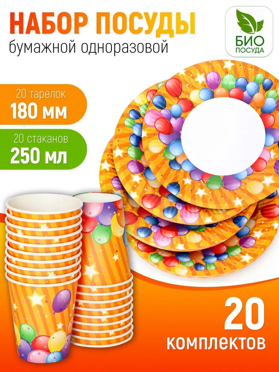 Набор посуды "Шары" КАРТОНЭКО, бумага, биоразлагаемые, 250мл, 40шт интересное: