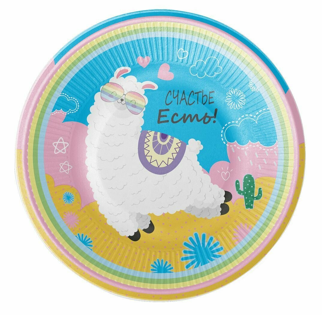 Купить Одноразовая посуда для праздника и пикника ND Play / Набор бумажных тарелок Лама на 18 персон (диаметр 18 см, 18 шт.), 303653