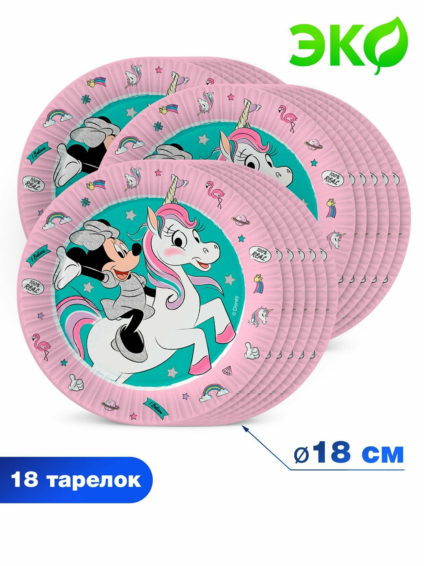 Купить Одноразовая посуда для праздника и пикника ND Play / Набор бумажных тарелок Minnie Mouse / Минни Маус на 18 персон (диаметр 18 см, 18 шт.), 303658