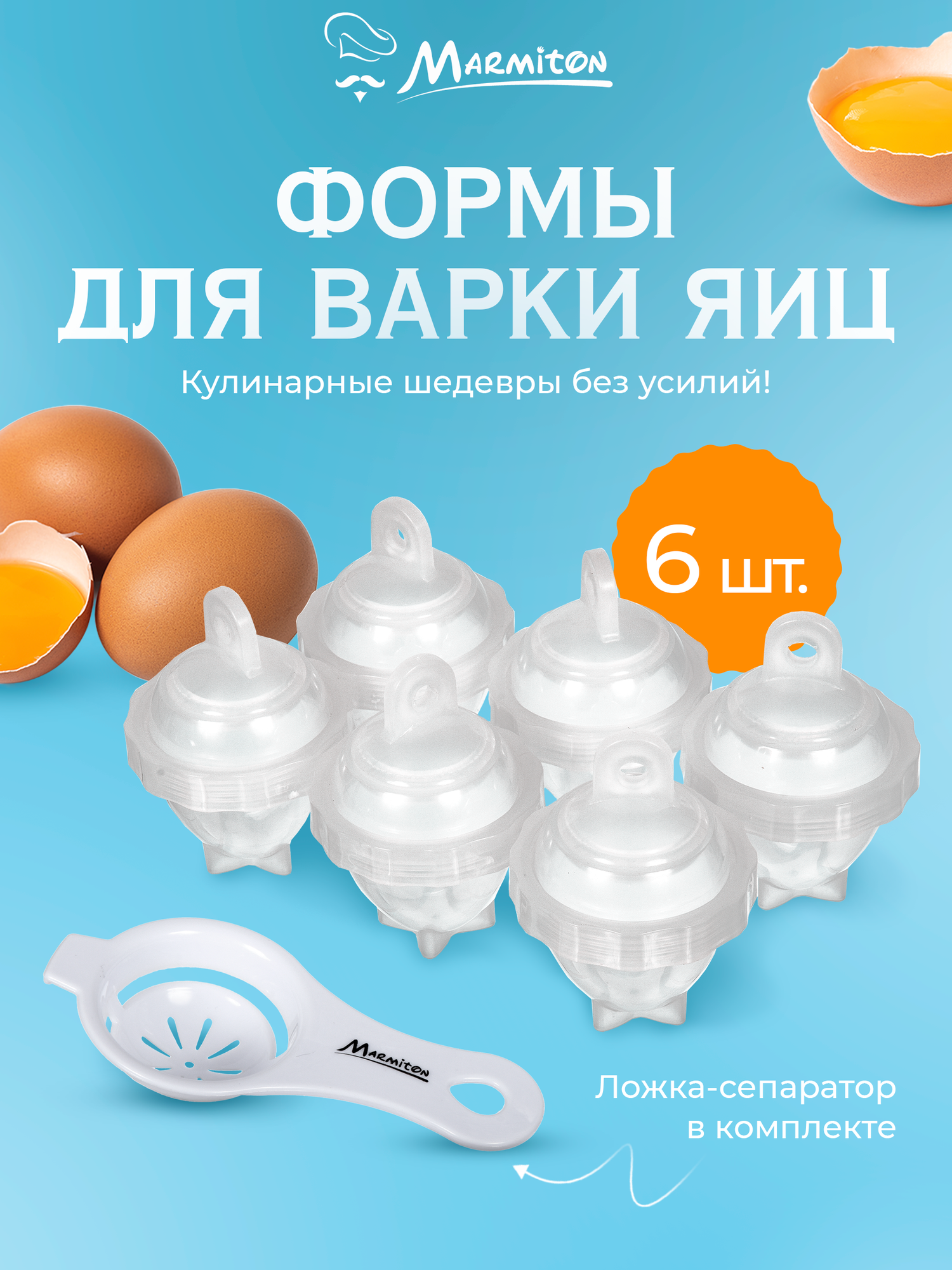 Формы для варки яиц (6 форм d 6,5 см, h 9 см + ложка-сепаратор 13*6,5*2,5 см) MARMITON интересное: