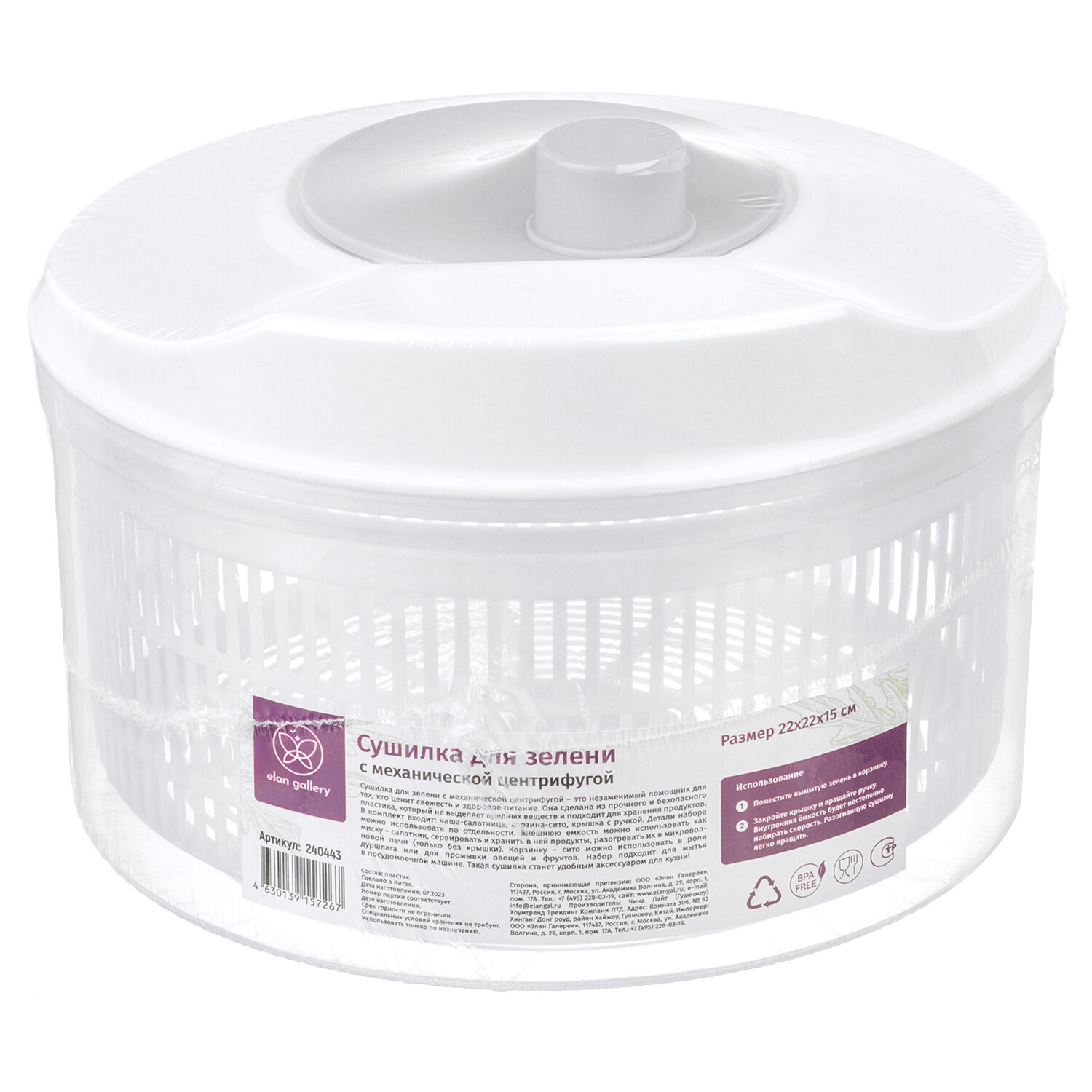 Сушилка - сушка ручная для зелени 3,5 л Elan Gallery Бело-серая, 22х22х15 см, механическая центрифуга интересное: