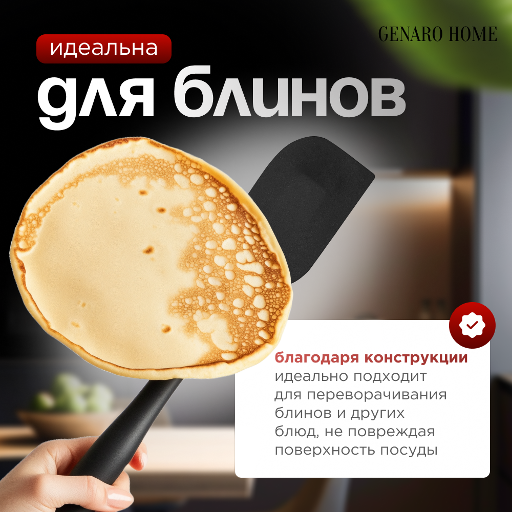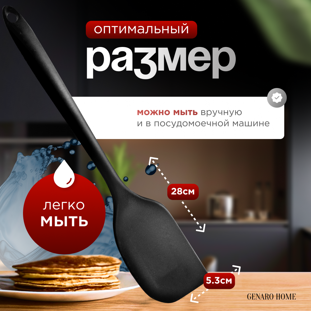 Купить Лопатка силиконовая для кухни " Genaro Home" 28 см, черная