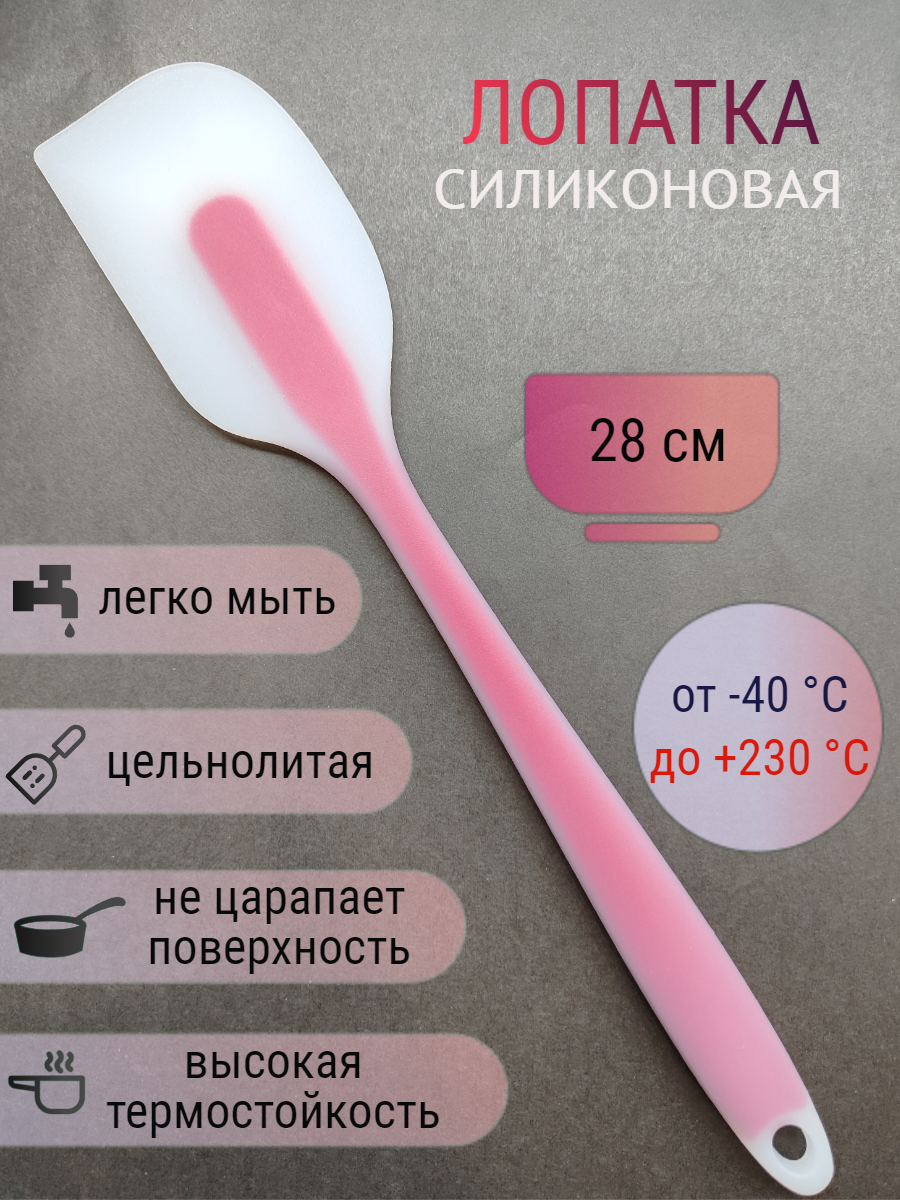 Лопатка силиконовая для кухни " Genaro Home" 28 см, цвет розовый