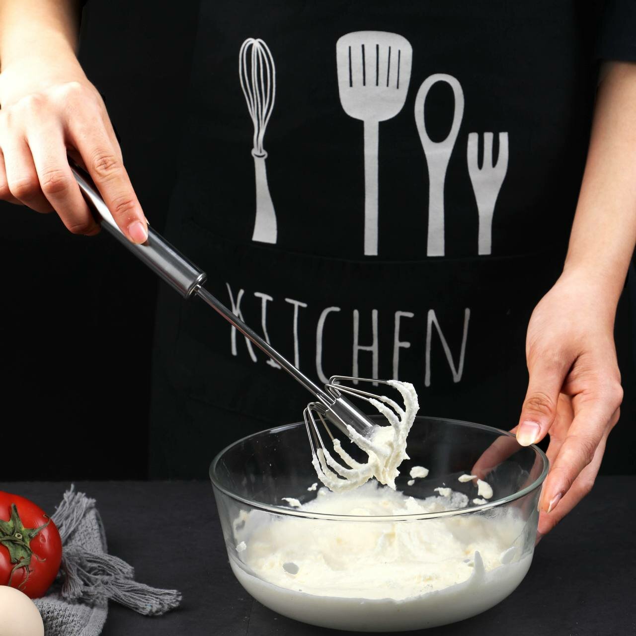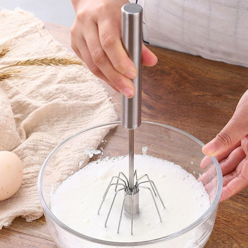 Купить Венчик / Венчик вращающийся из нержавеющей стали / Полуавтоматический венчик нажимной 30 см. / Ручной миксер / Вспениватель