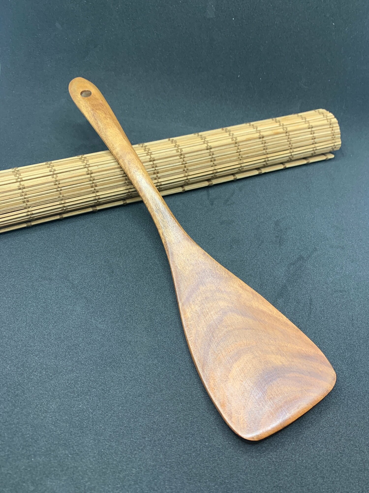 Купить Изогнутая деревянная лопатка СКДрево для жарки, для посуды с антипригарным покрытием, 31 х 7,5см