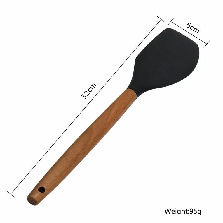 Лопатка AMG style, деревянная ручка, силикон, черная, бежевая, 32х6 см интересное: