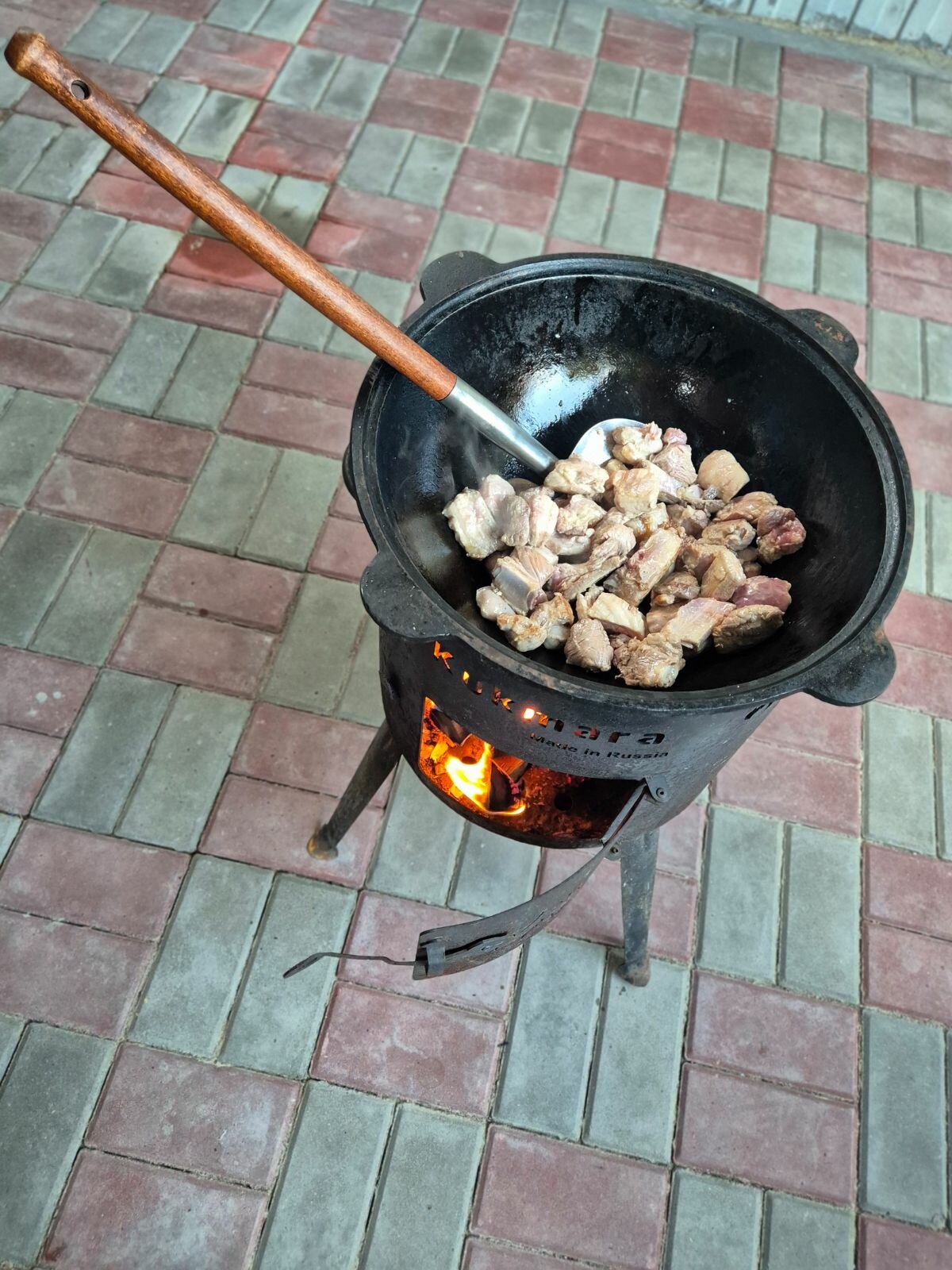 Шумовка узбекская для казана, для плова, длина 72 см плоская интересное:
