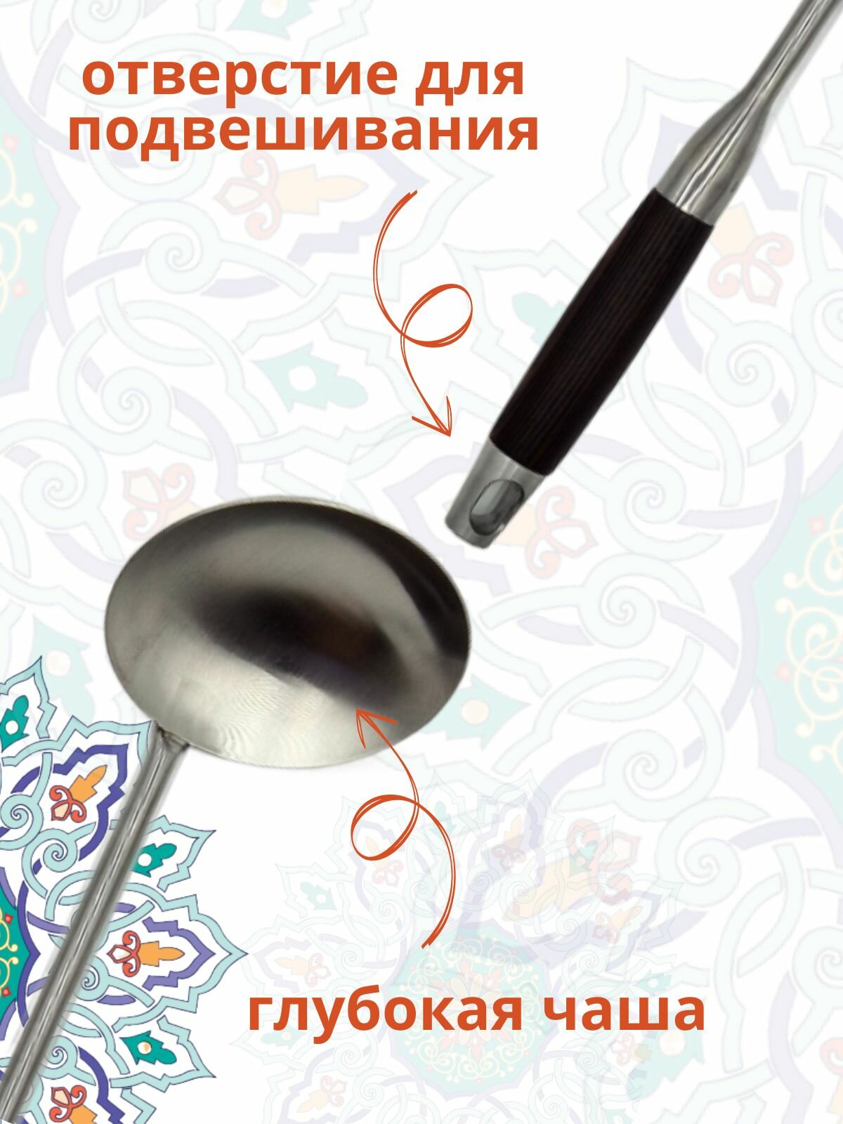 Шумовка Люкс + половник с литой ручкой, 46 см Узбекистан интересное: