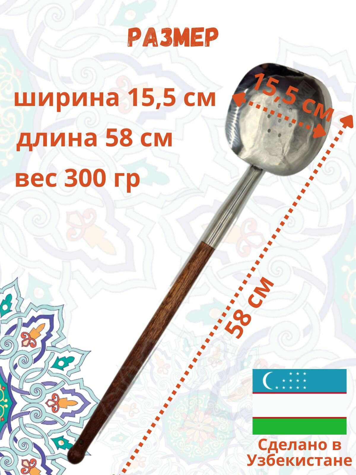 Шумовка узбекская для казана, для плова, длина 58 см плоская интересное: