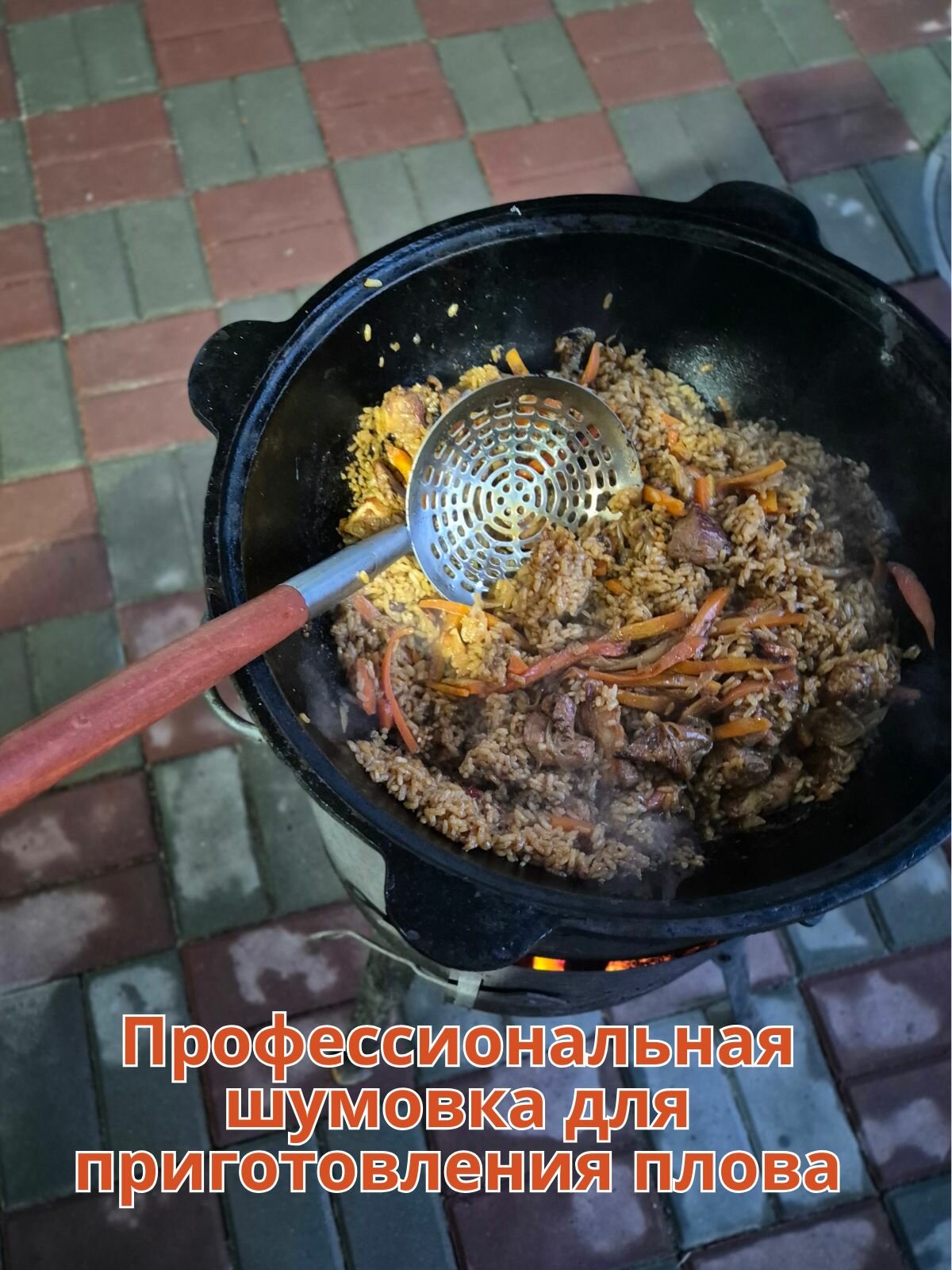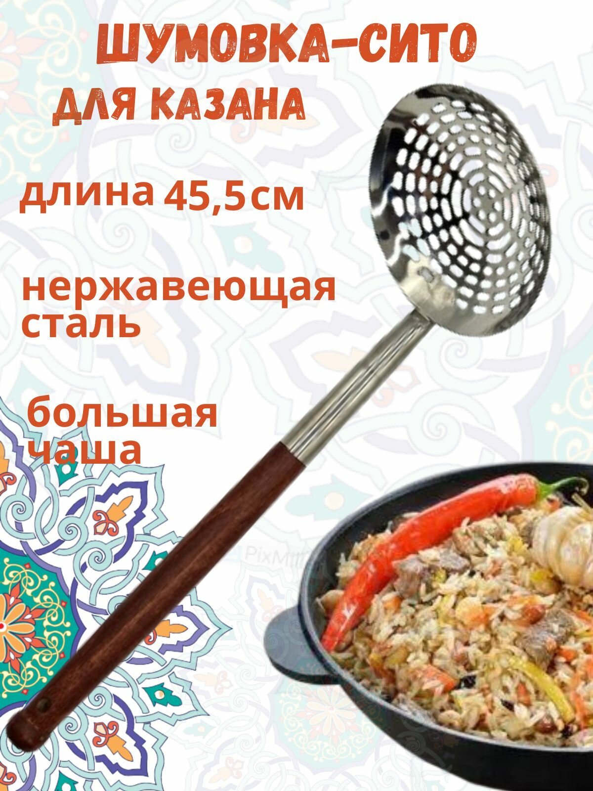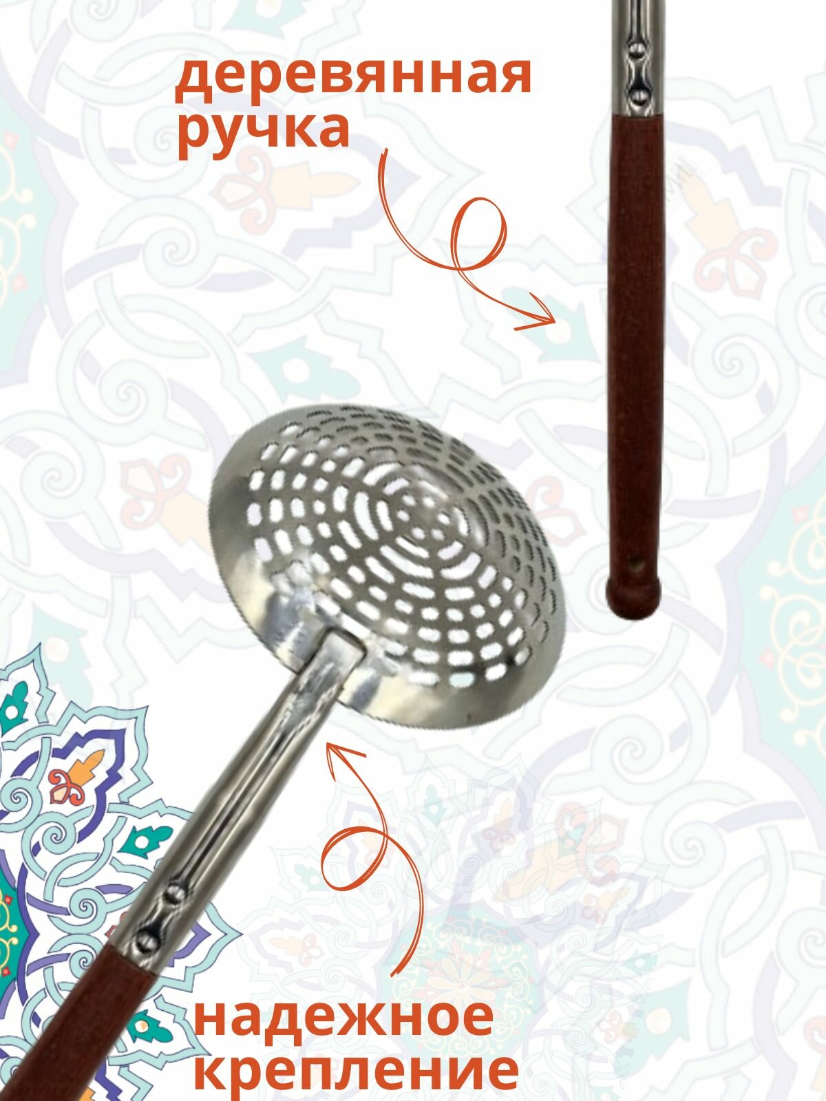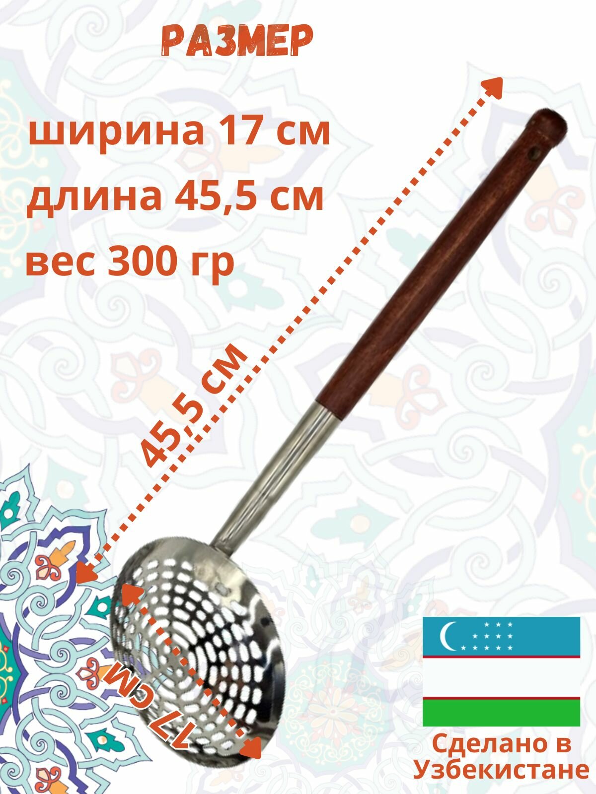 Шумовка сито узбекская, чашка большая, для казана, для плова, длина 45,5 см интересное: