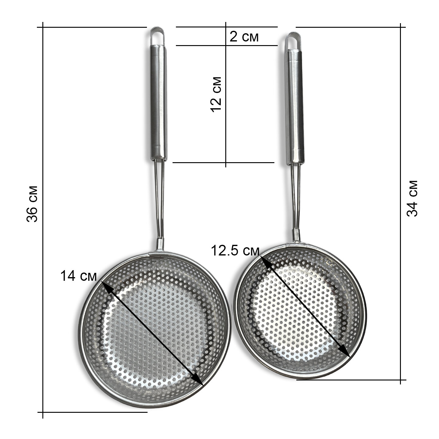 Шумовка из нержавеющей стали с длинной ручкой / сито / жироуловитель / диаметр 14 см, длина ручки 23,5 см