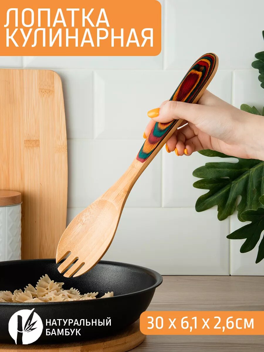 Лопатка кулинарная с декорированной ручкой 30см, бамбук интересное: