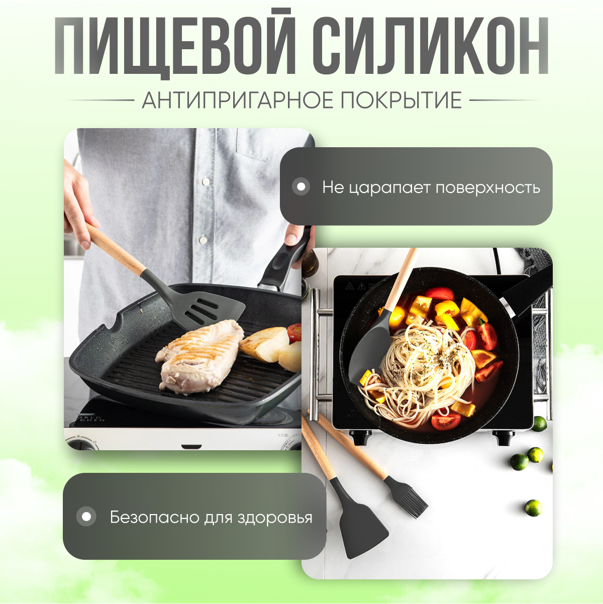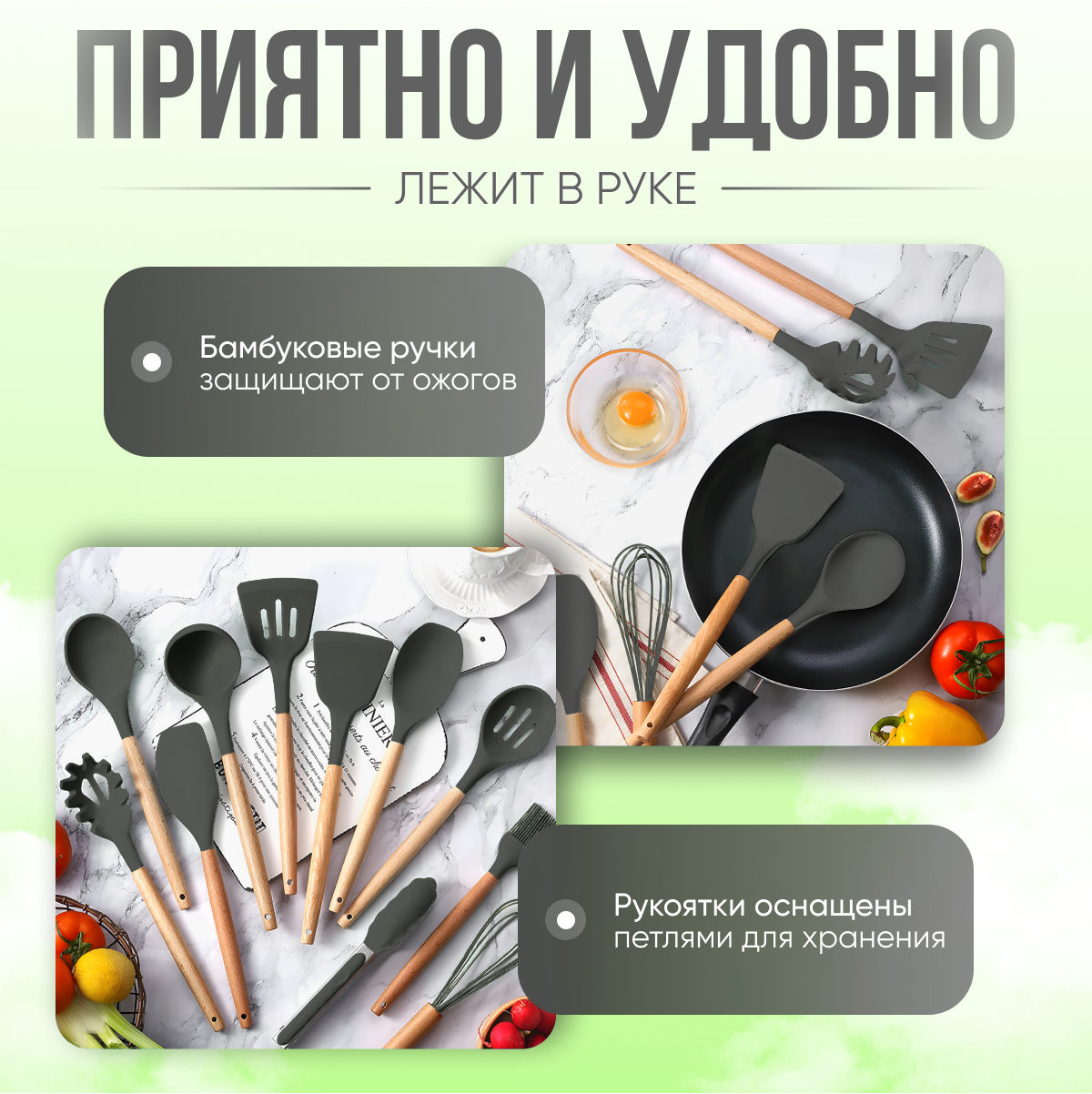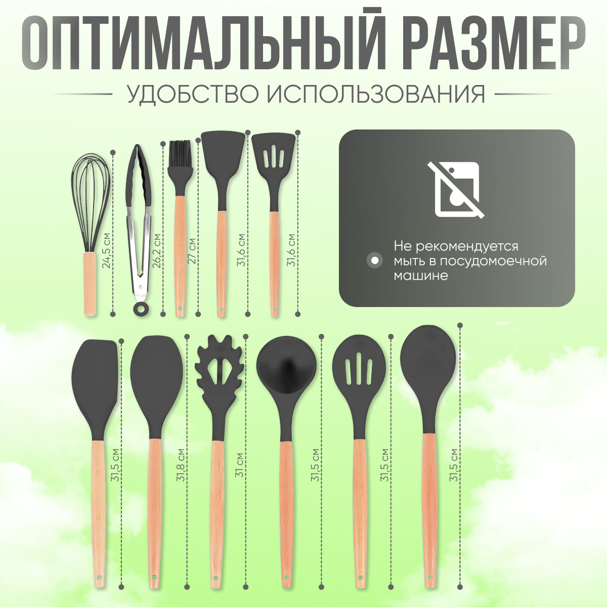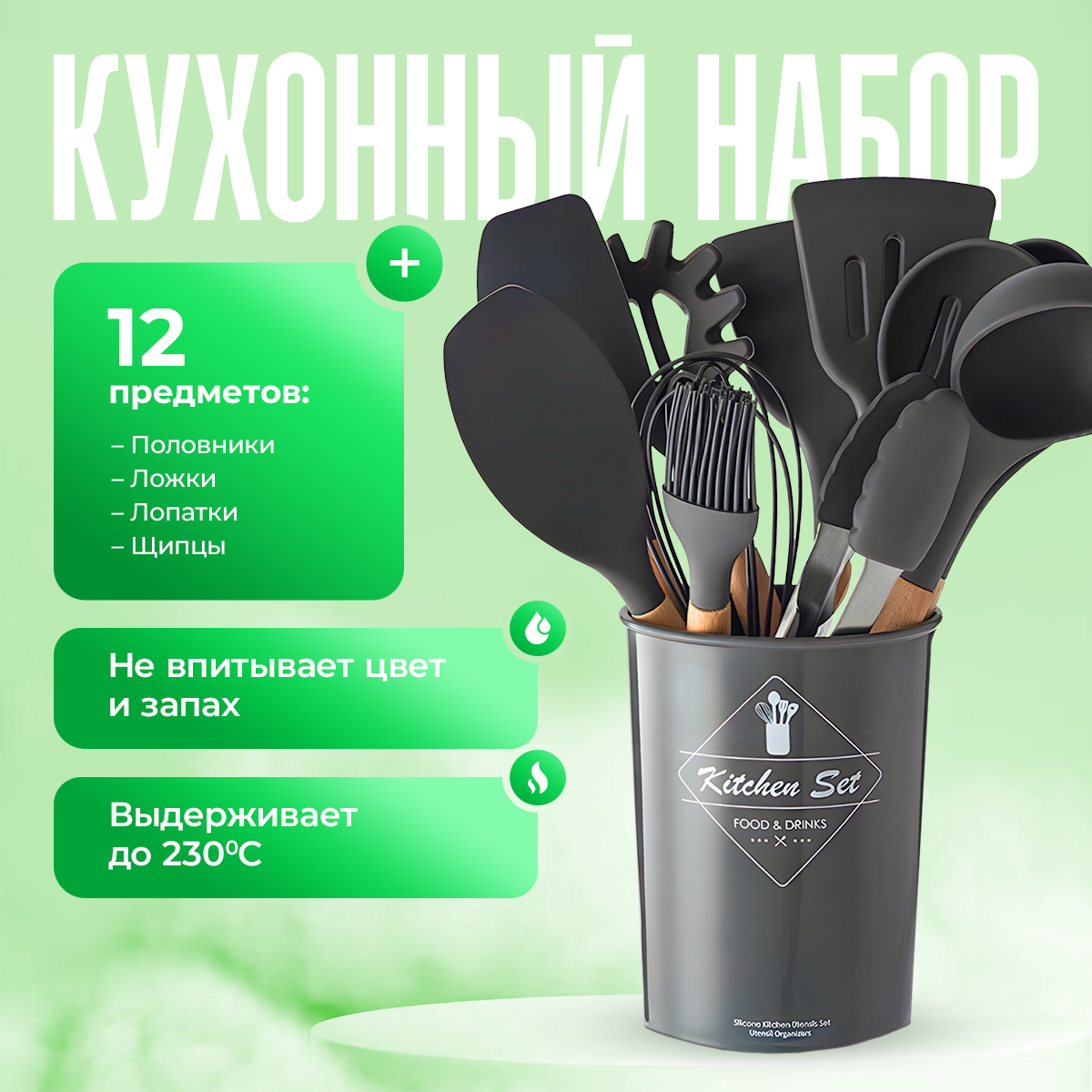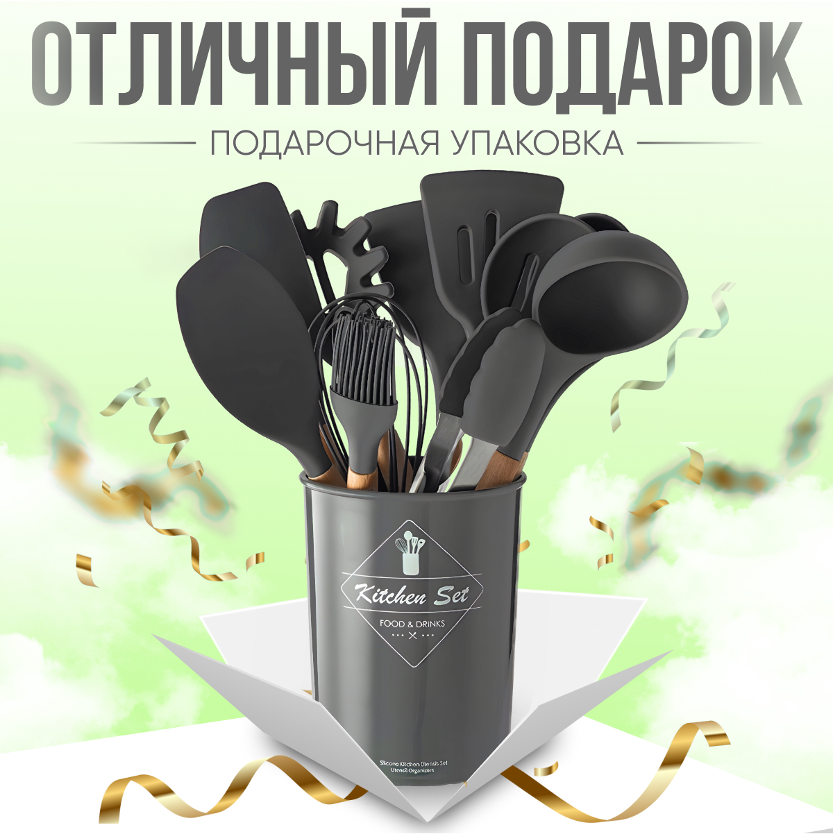 Набор кухонных принадлежностей FGS, 12 предметов+подставка, темно-серый интересное: