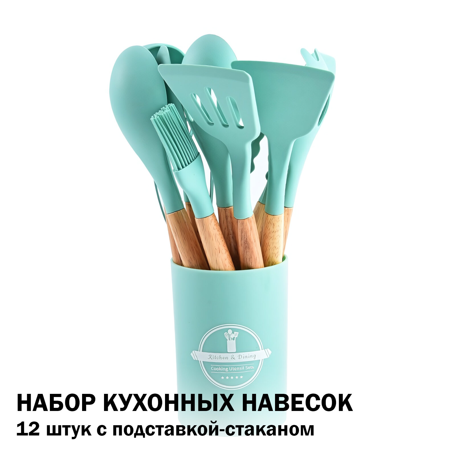 Набор кухонных навесок из 12 штук с подставкой-стаканом, цвет светло-зеленый