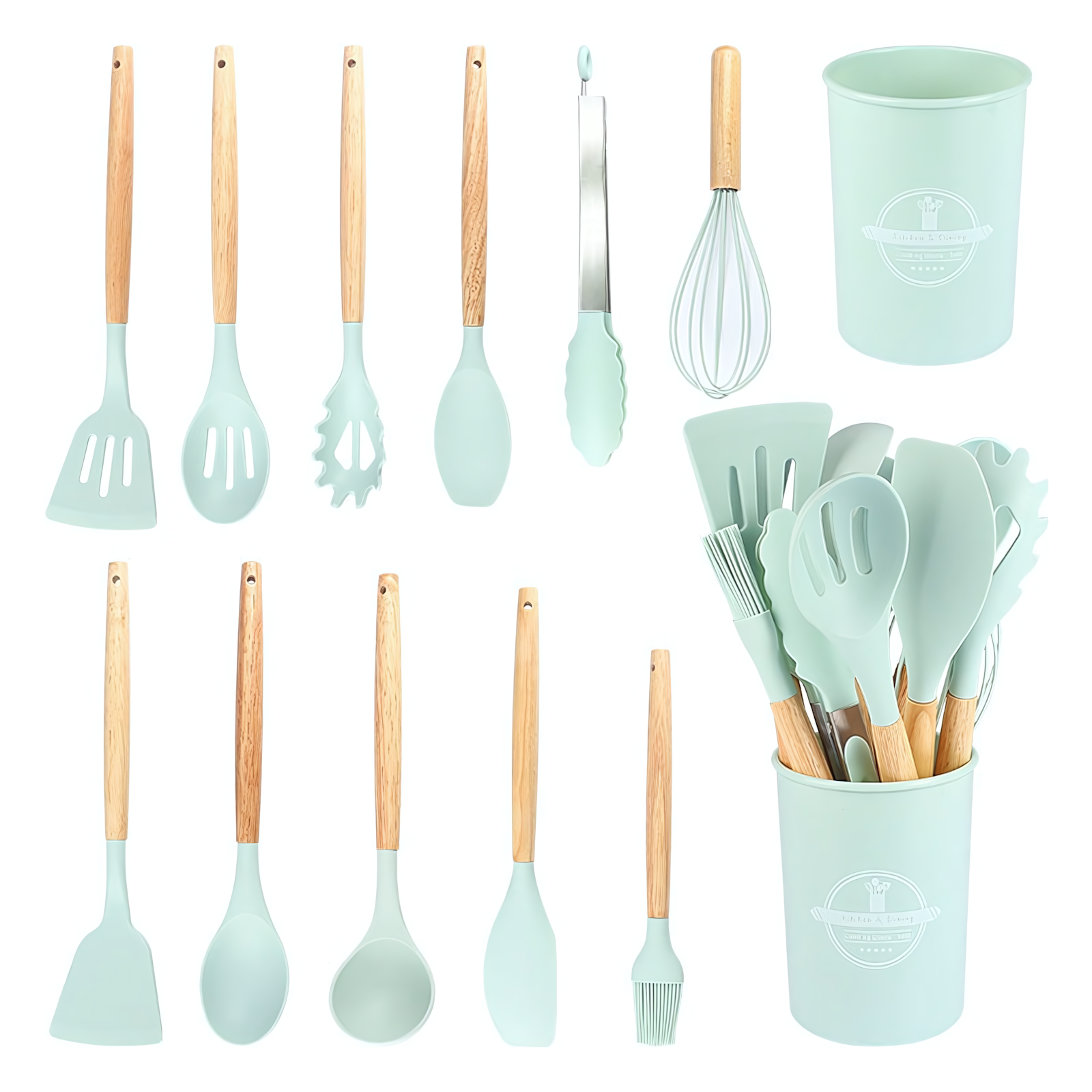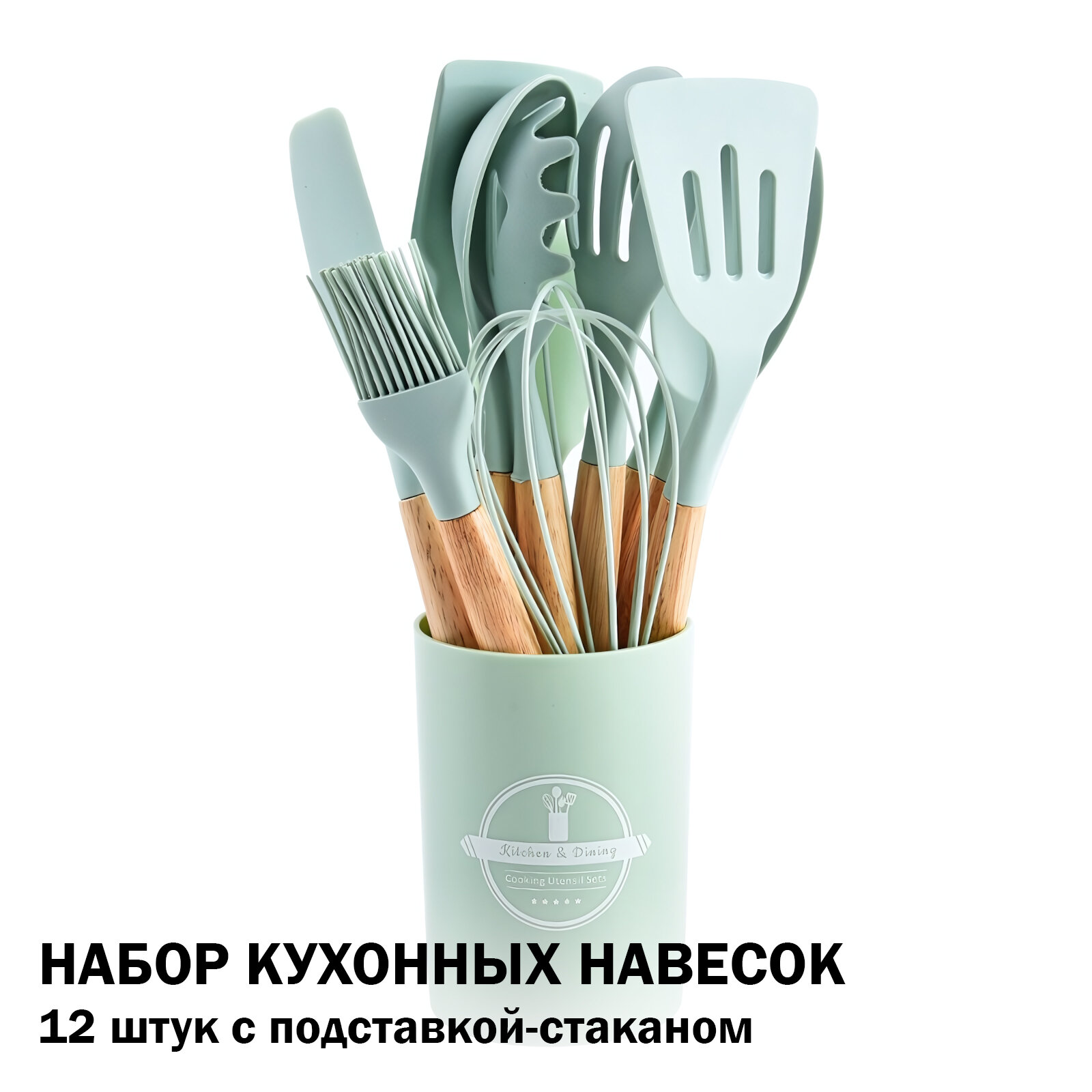 Купить Набор кухонных навесок из 12 штук с подставкой-стаканом, цвет светло-зеленый