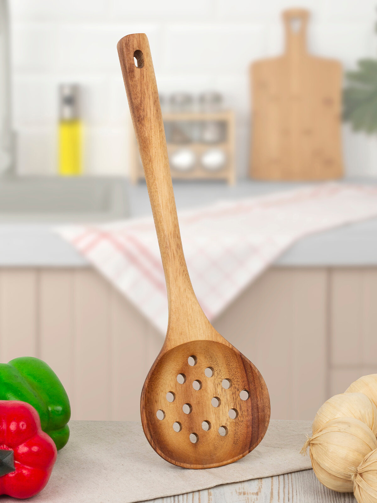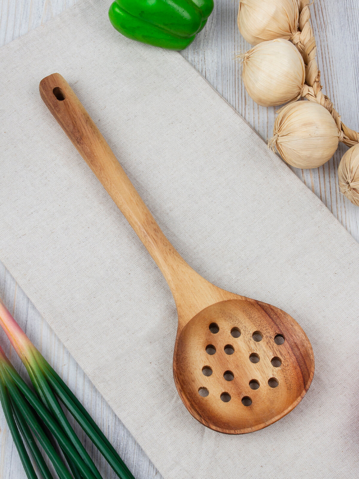 Купить Ложка шумовка кулинарная 34 см, акация