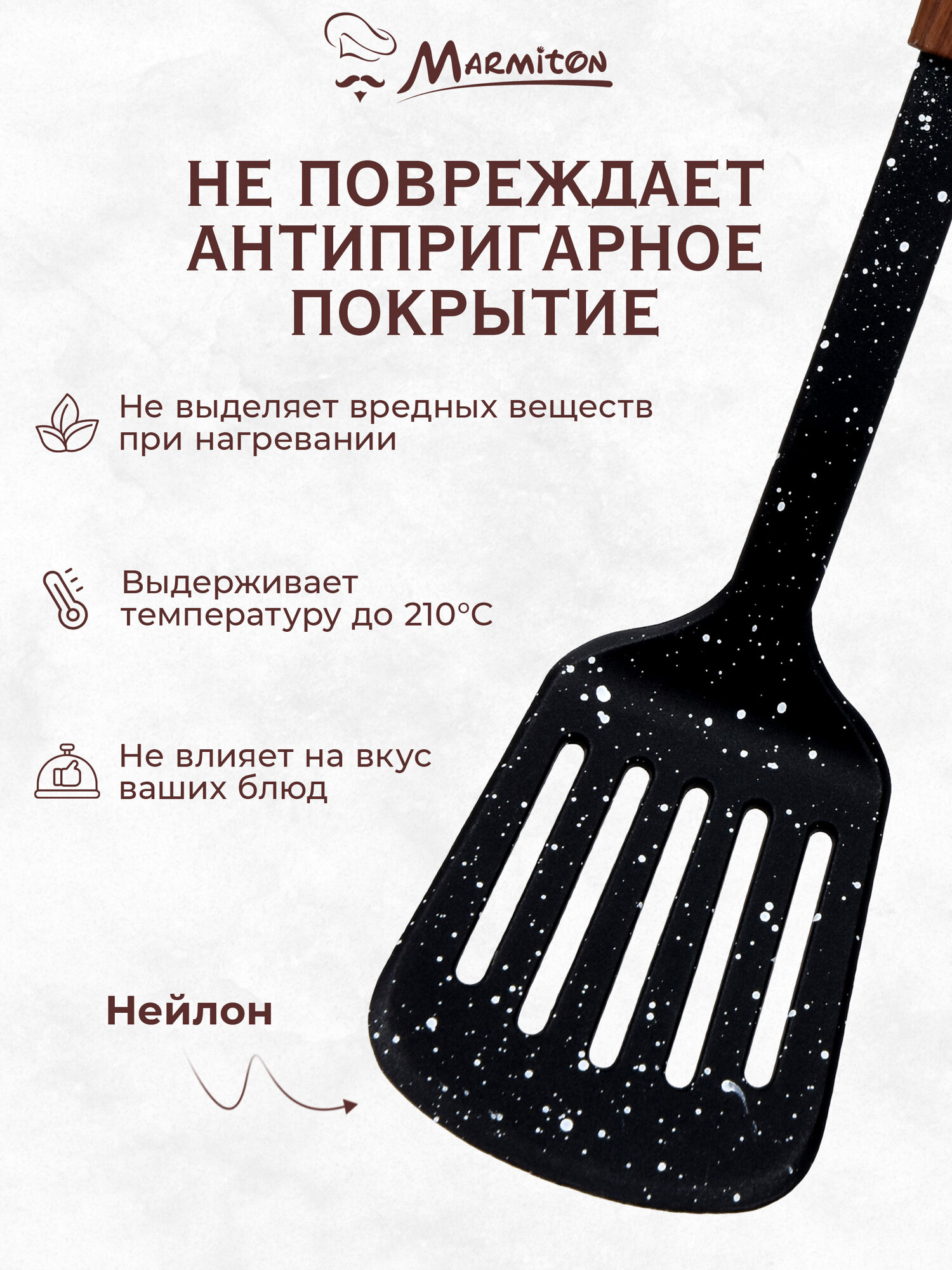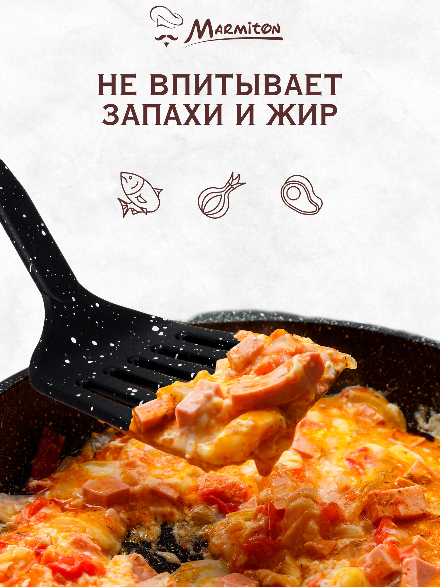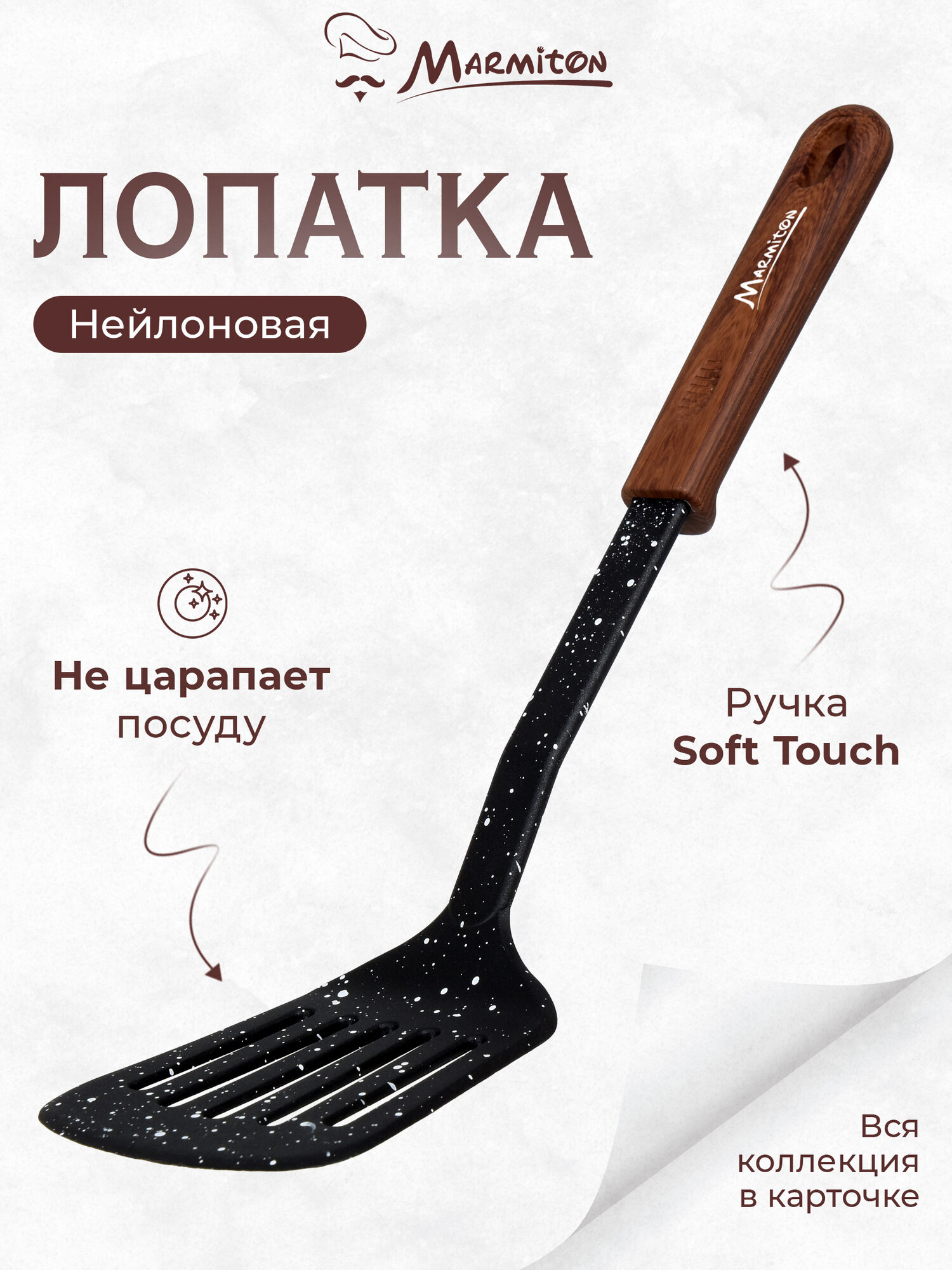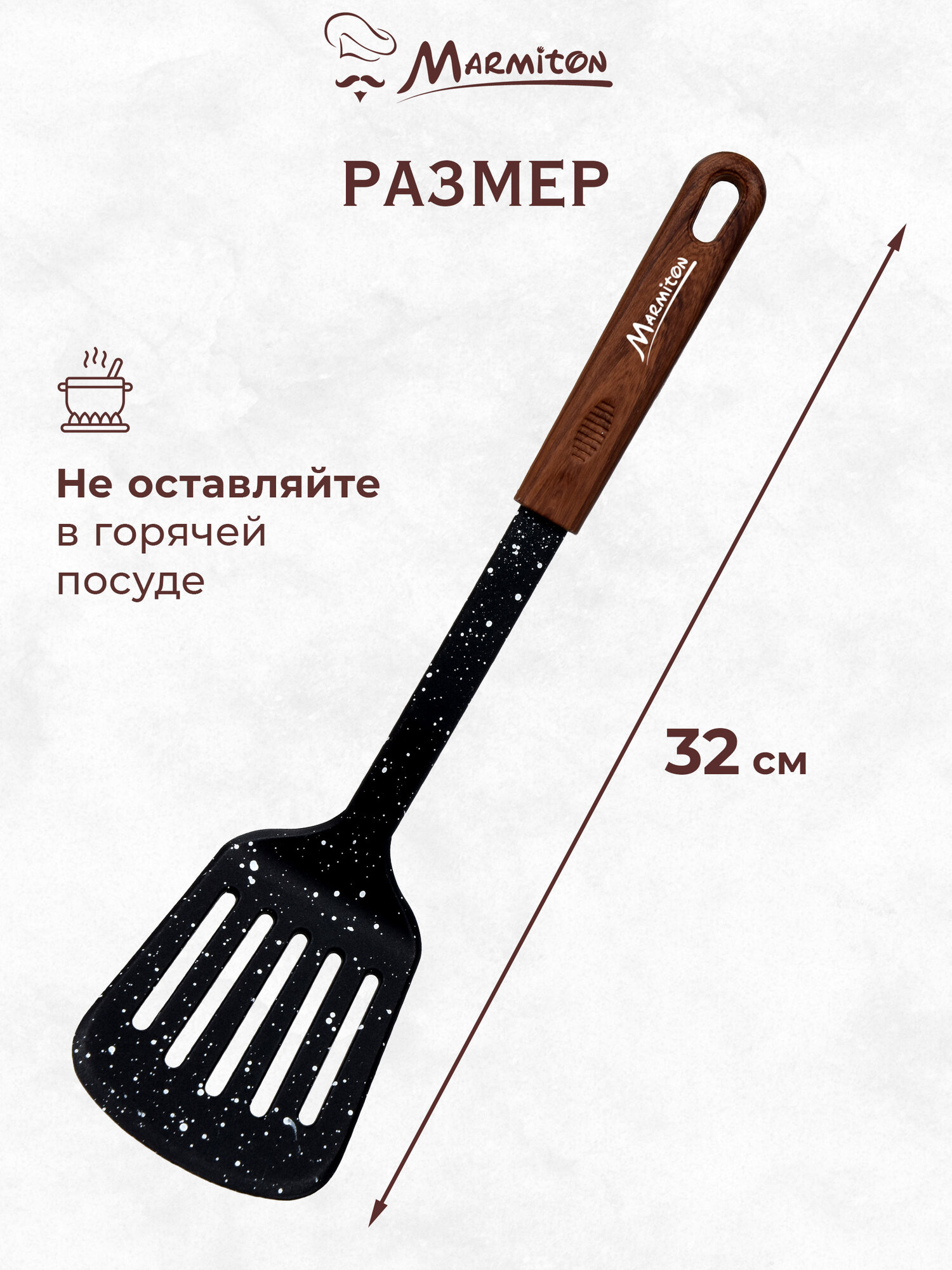 Лопатка кулинарная с отверстиями нейлоновая, резиновая ручка, 32 см MARMITON интересное: