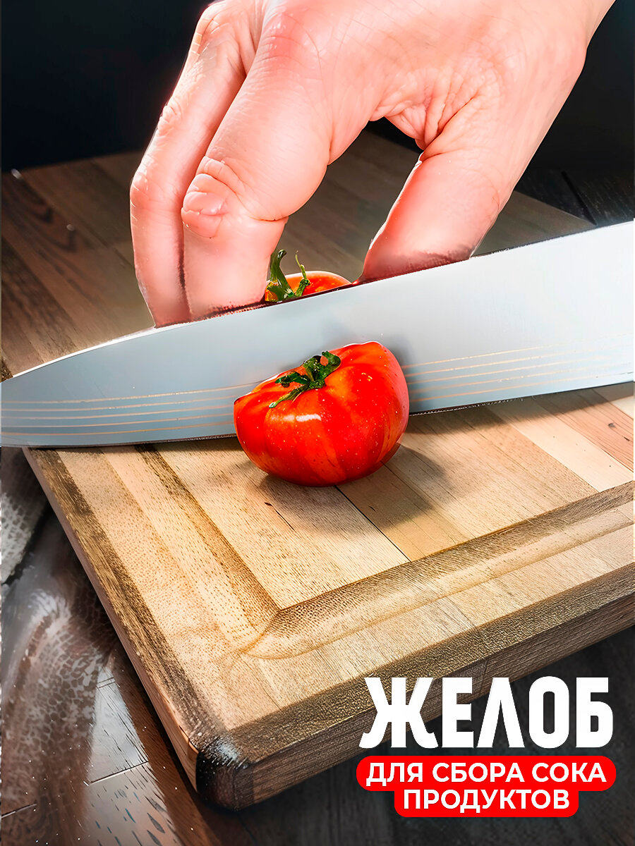 Доска разделочная деревянная для кухни набор + подставка, Набор 2 в 1