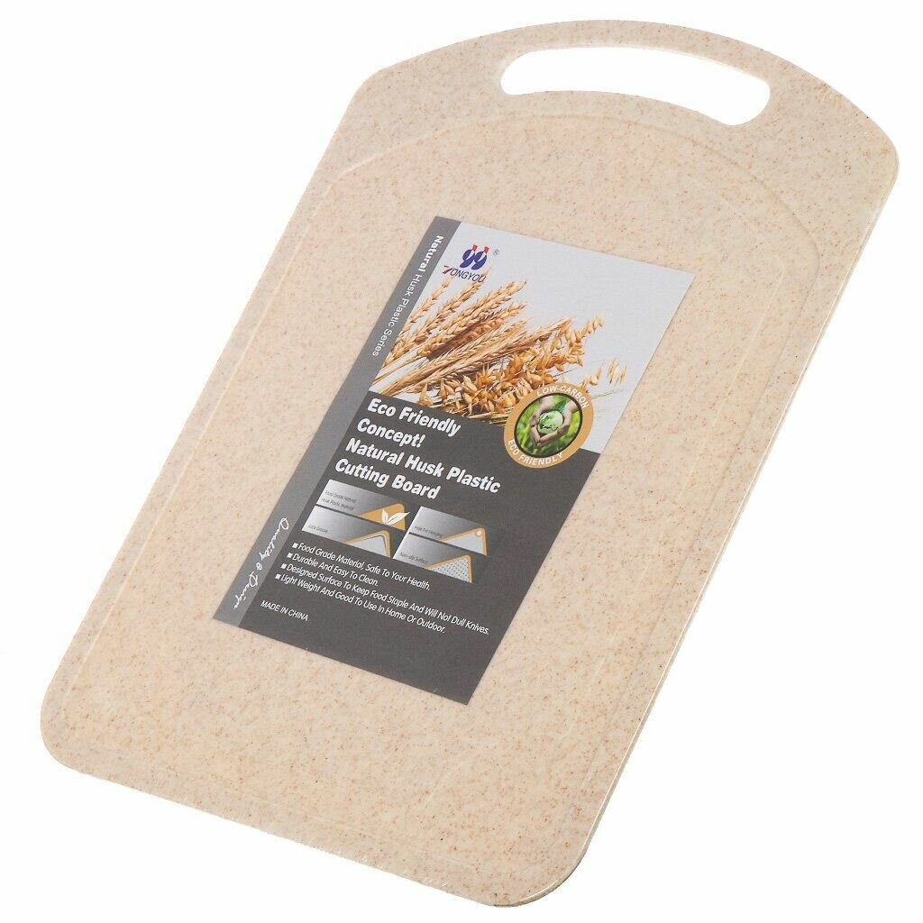 Доска разделочная пластик, 35х24х0.4 см, с ручкой, прямоугольная, бежевая интересное: