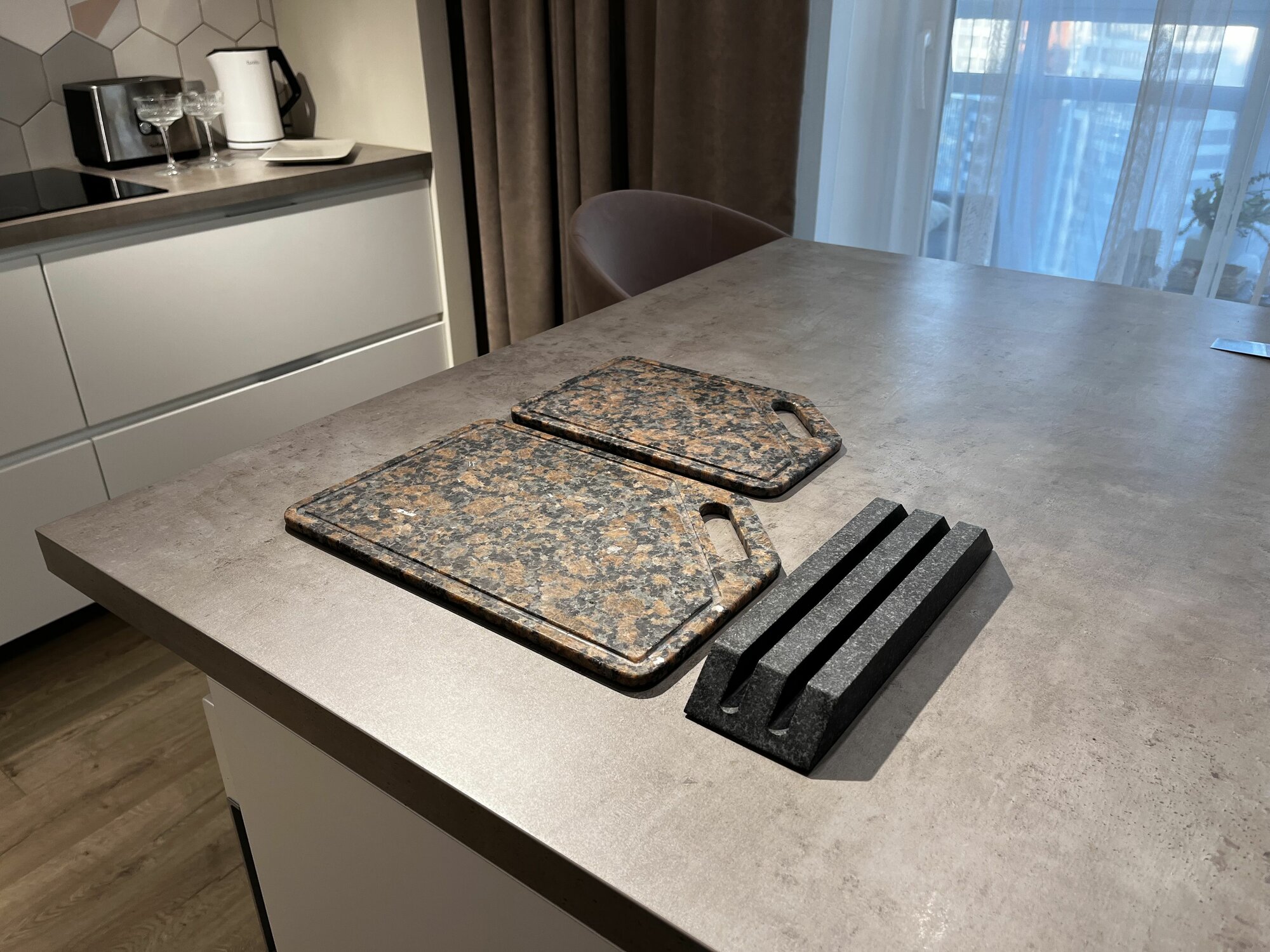 Набор разделочных досок на подставке из Натурального Гранита / каменные доски 2 шт и подставка KAMNEMIR интересное: