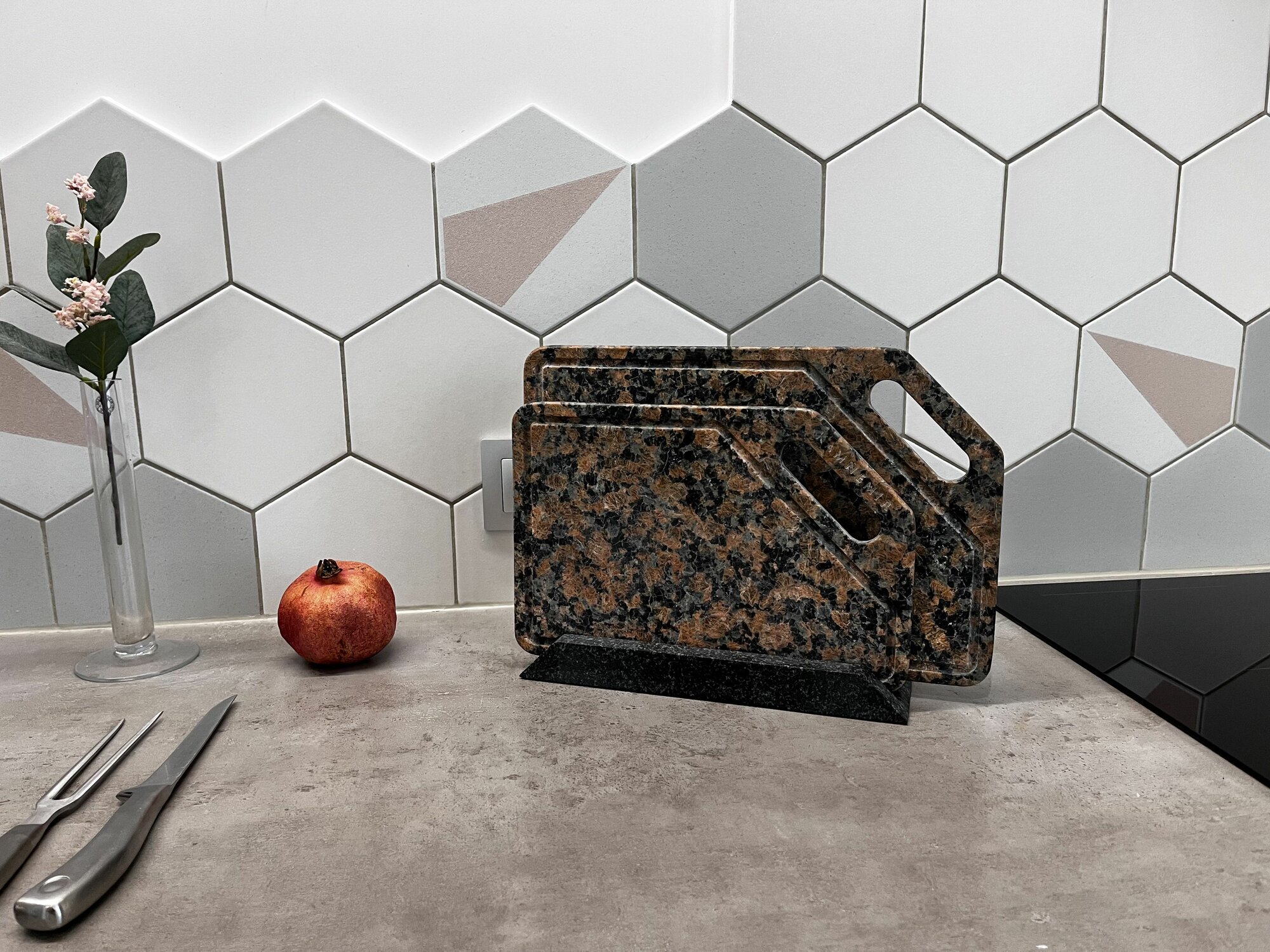 Купить Набор разделочных досок на подставке из Натурального Гранита / каменные доски 2 шт и подставка KAMNEMIR