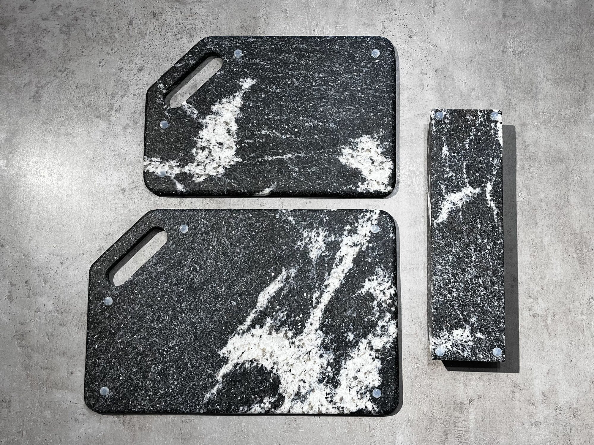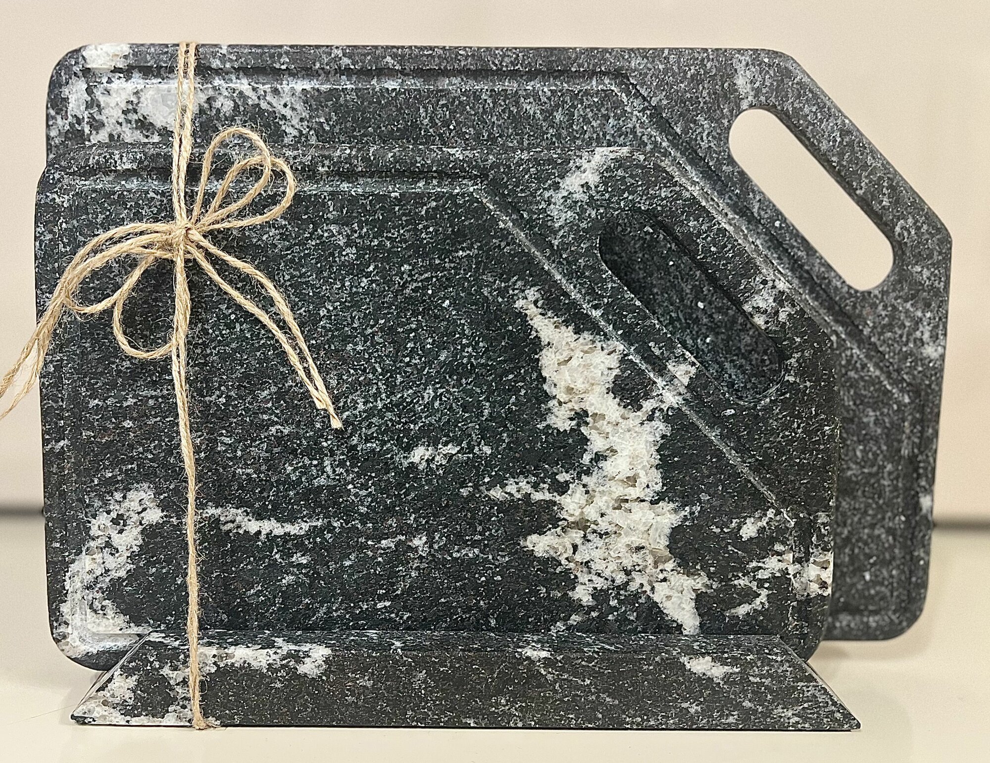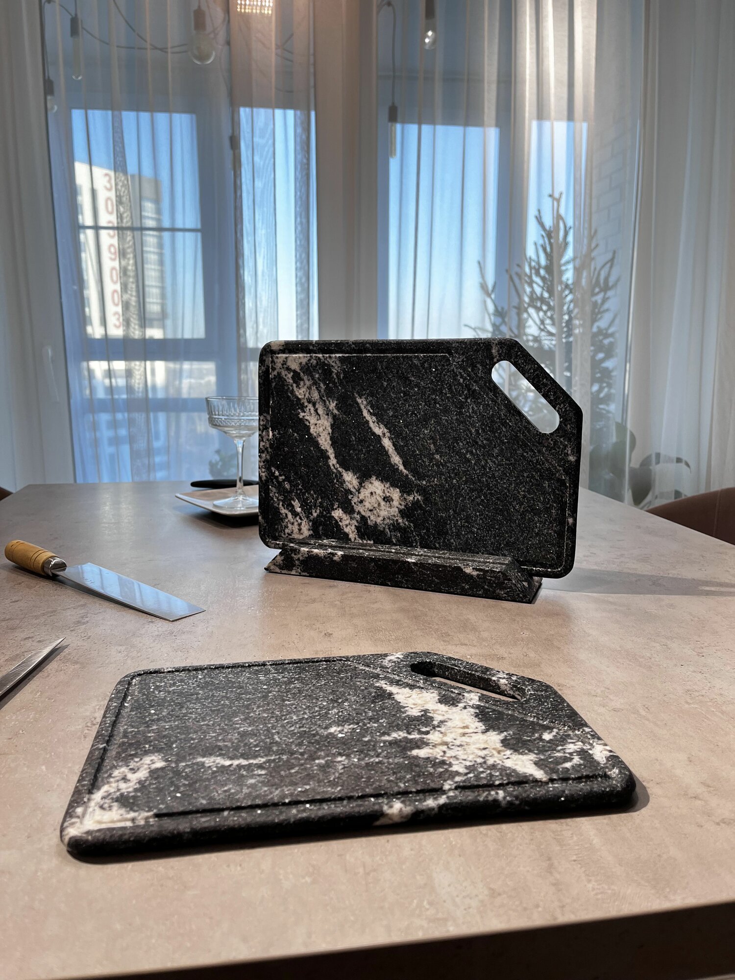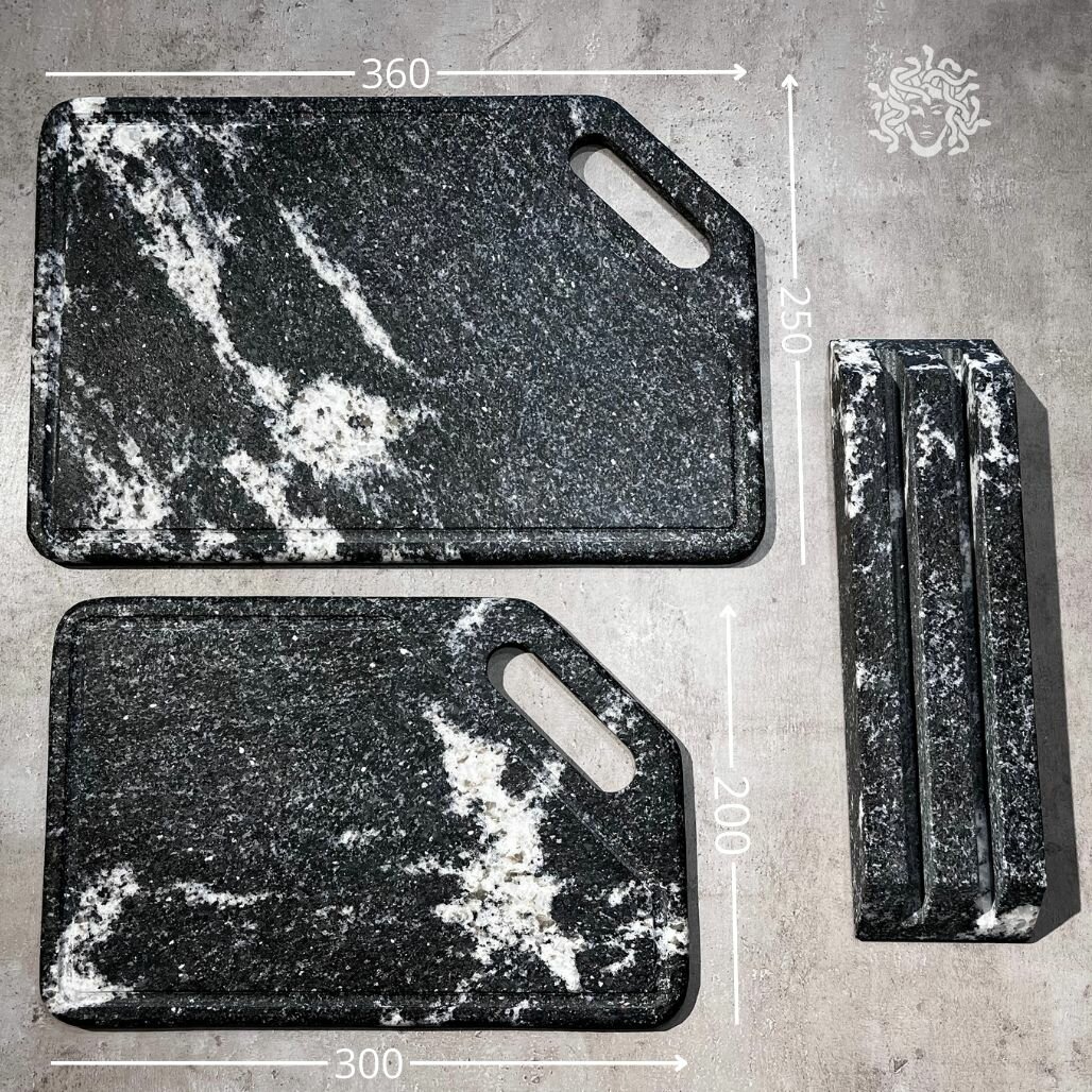 Набор разделочных досок на подставке из Натурального Гранита / каменные доски 2 шт и подставка KAMNEMIR
