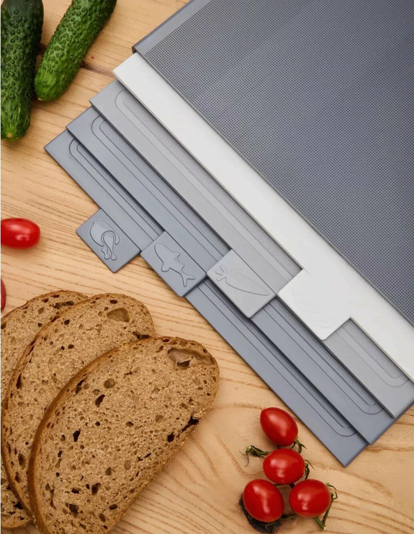 Купить Набор разделочных досок для кухни на подставке, набор 4 шт, серые