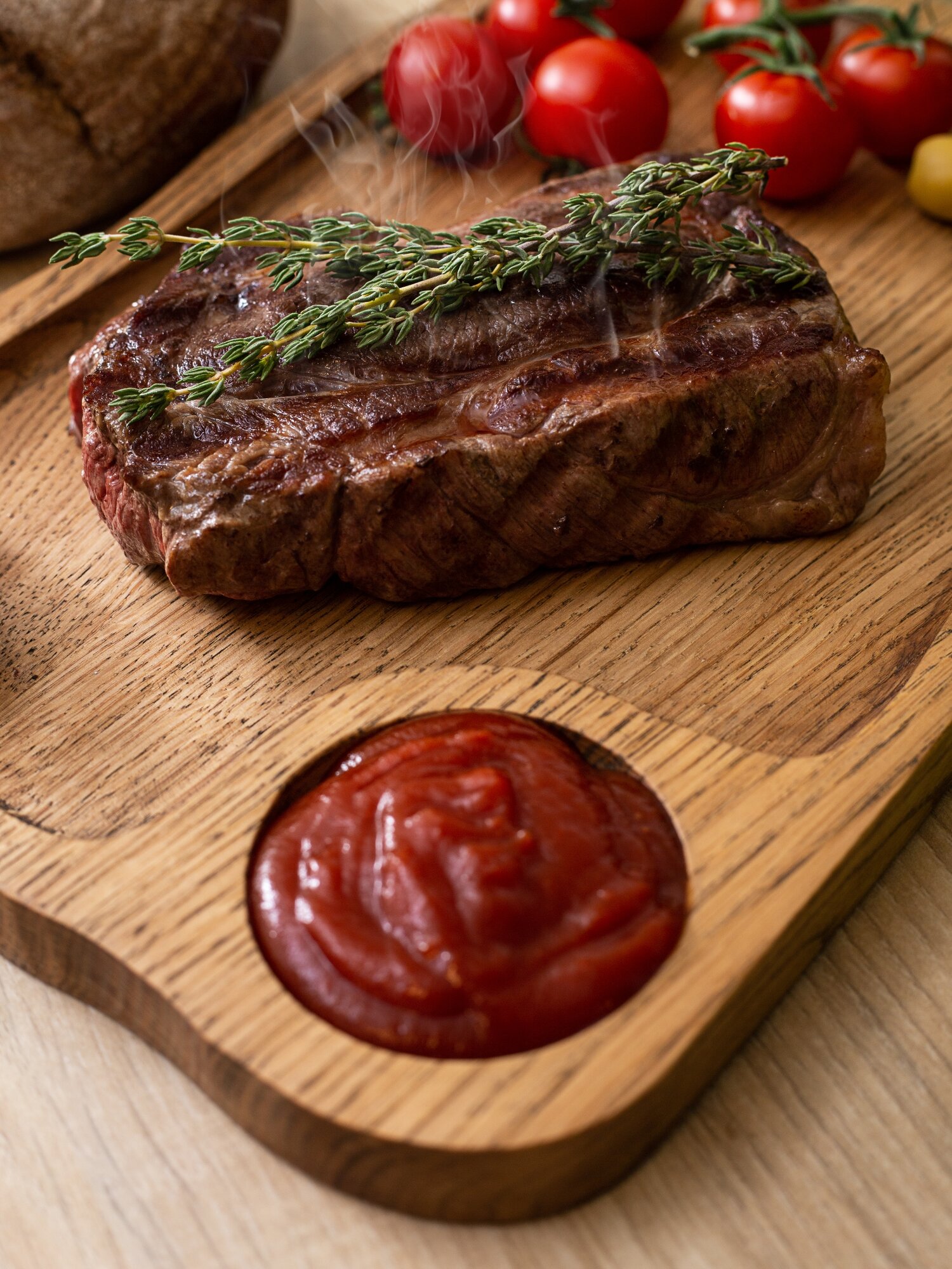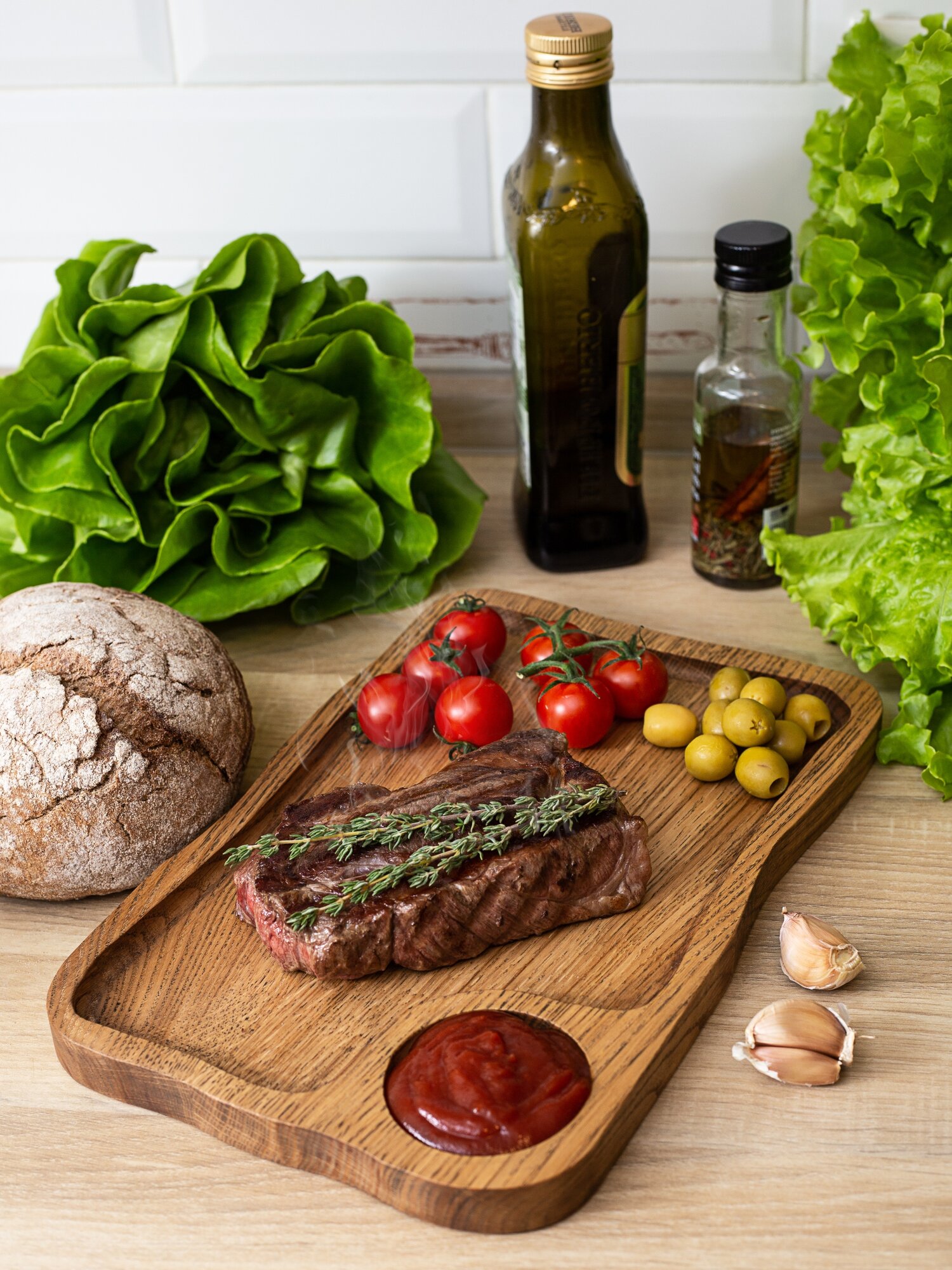 Деревянная сервировочная доска для подачи стейка без соусника интересное: