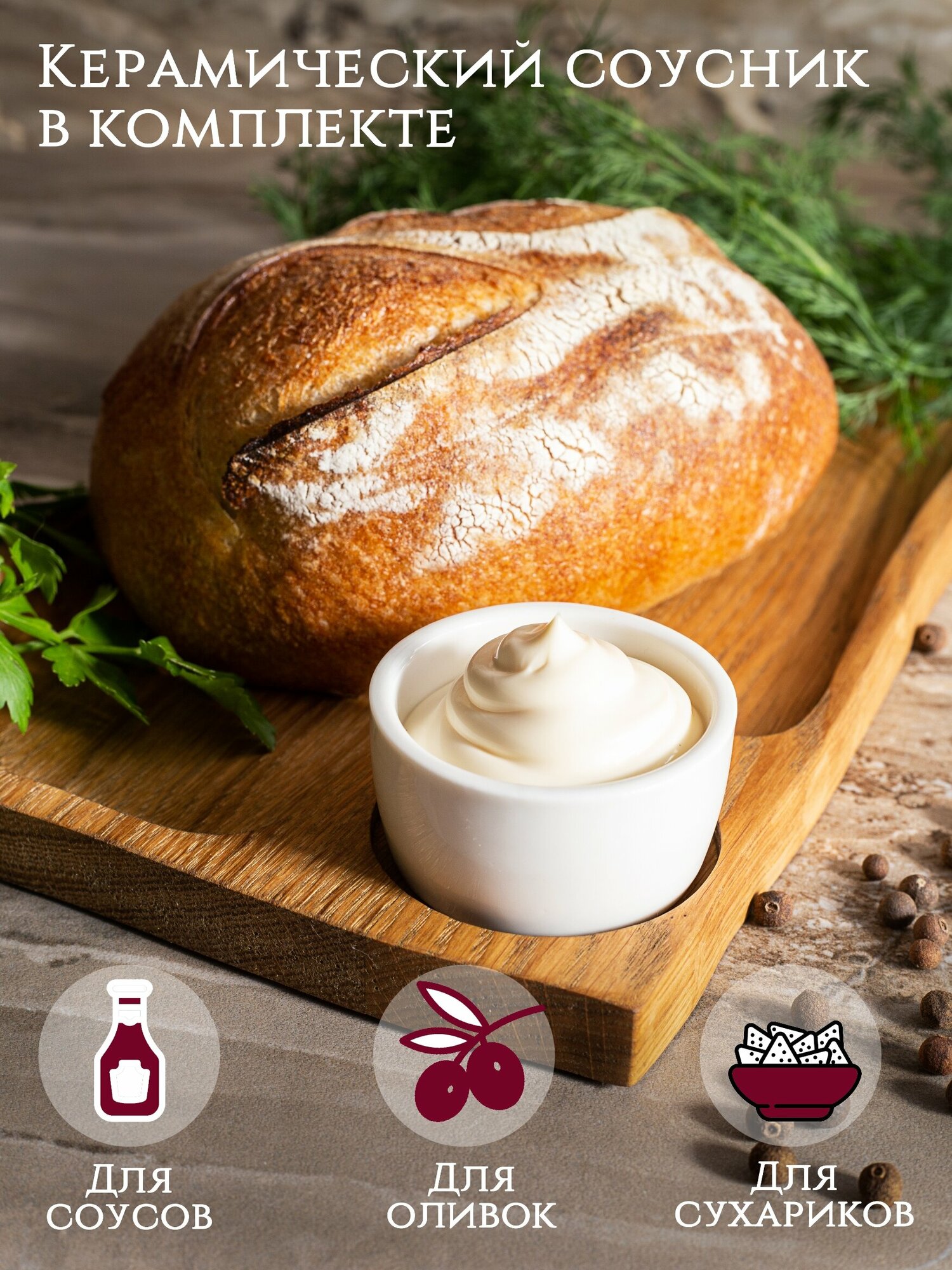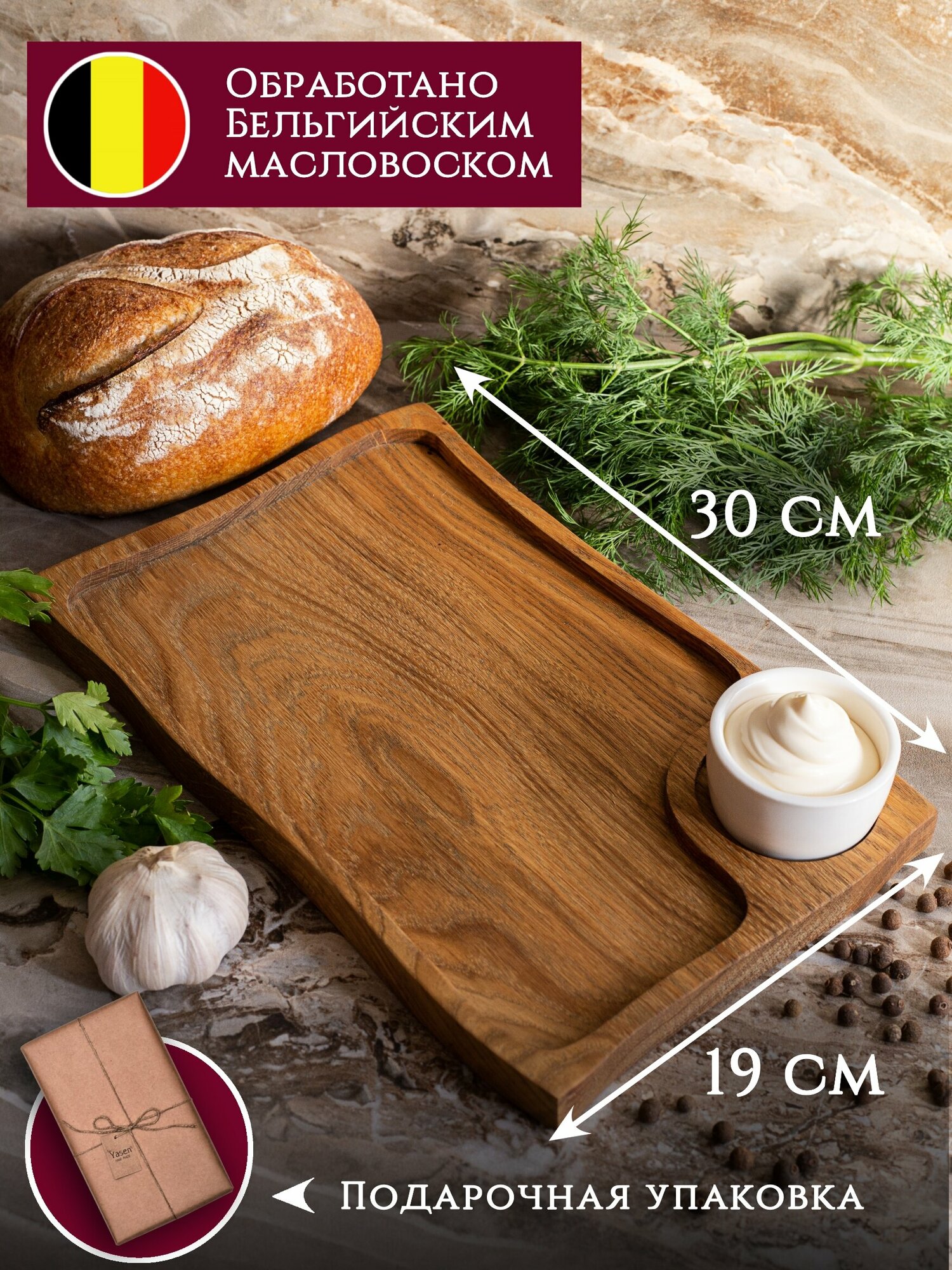 Сервировочная доска для стейка с фарфоровым соусником. Цвет "орех" (коричневый). Yasen' интересное: